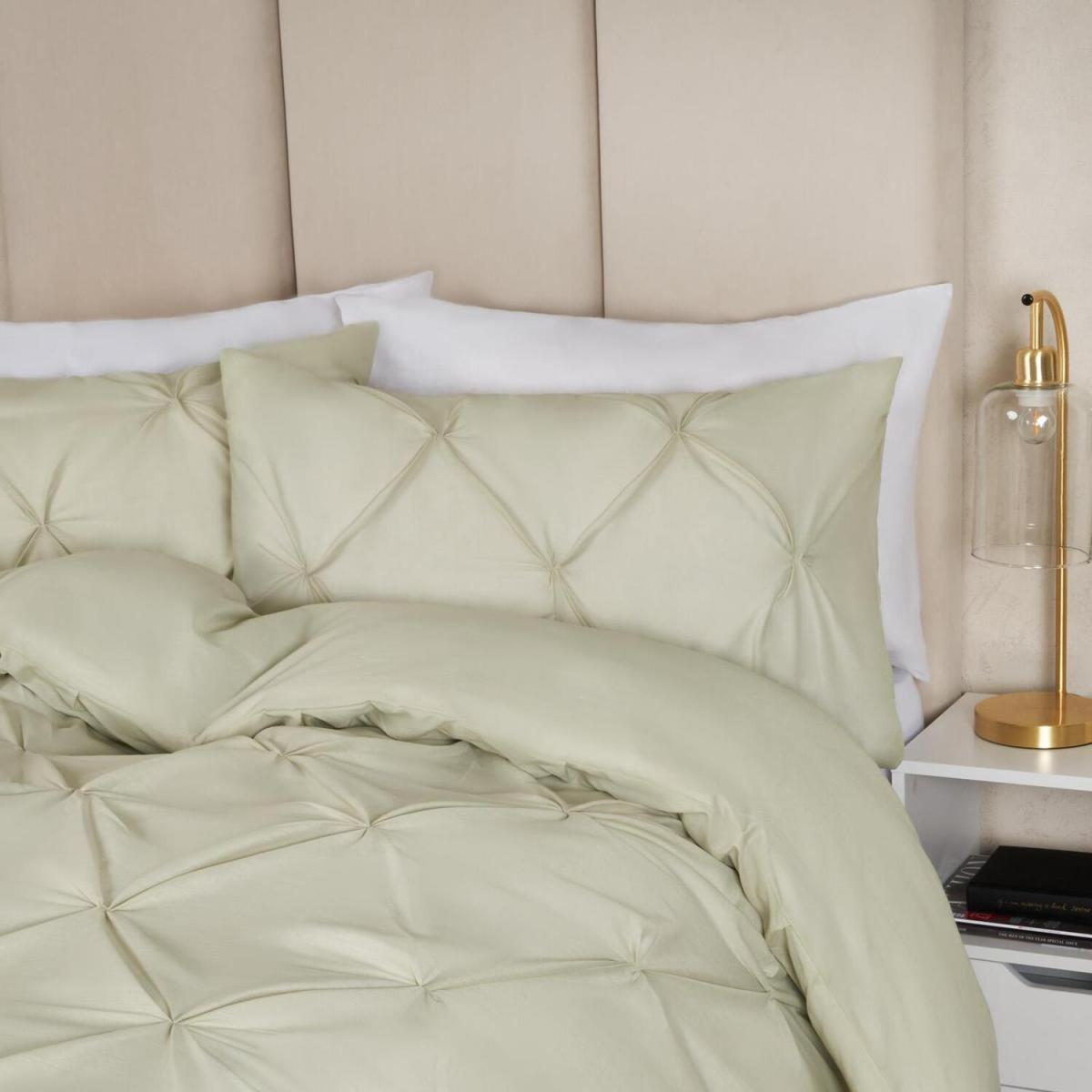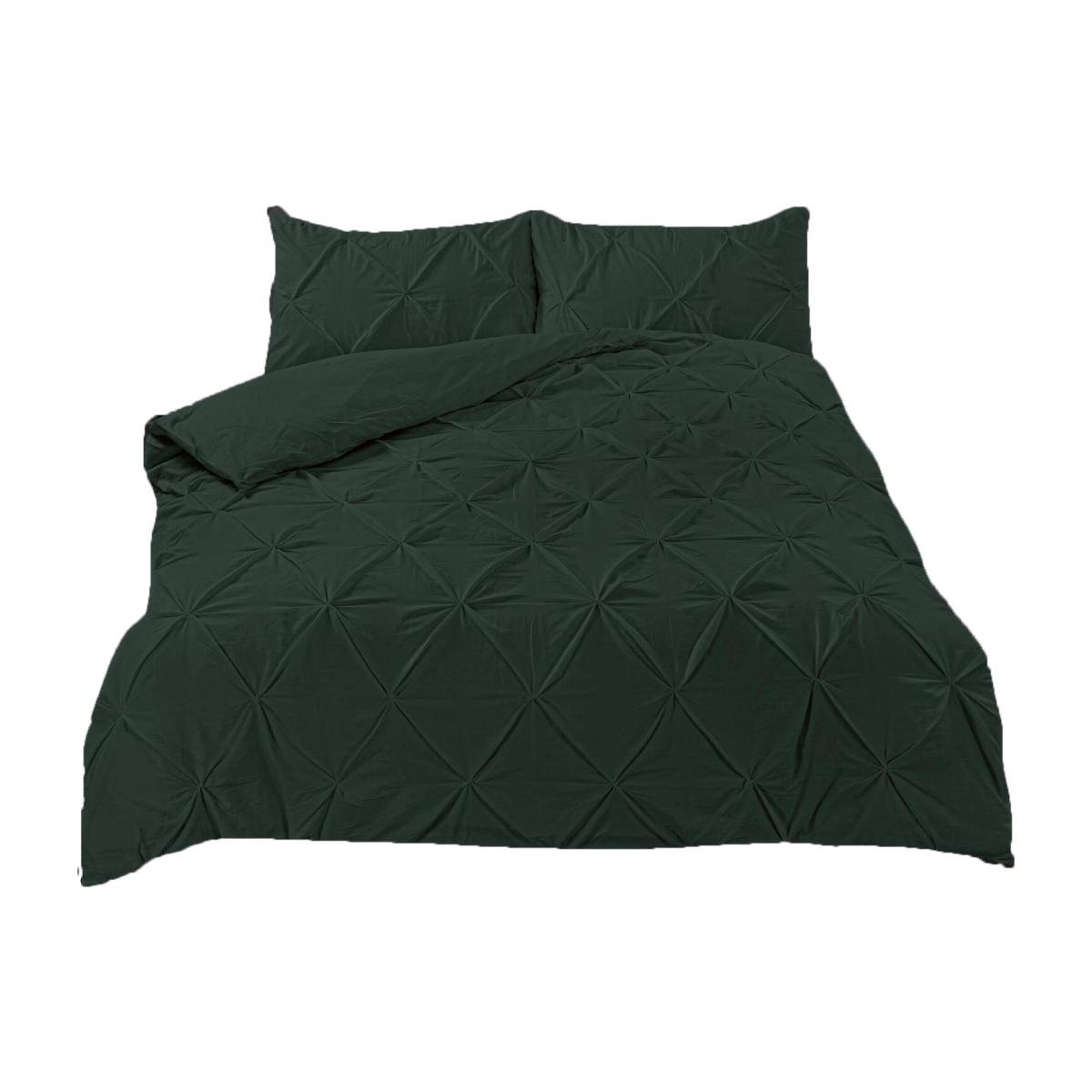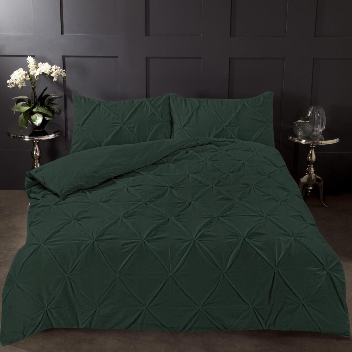 Highams Diamond Pintuck Duvet Cover with Pillowcase - Forest Green / Super King