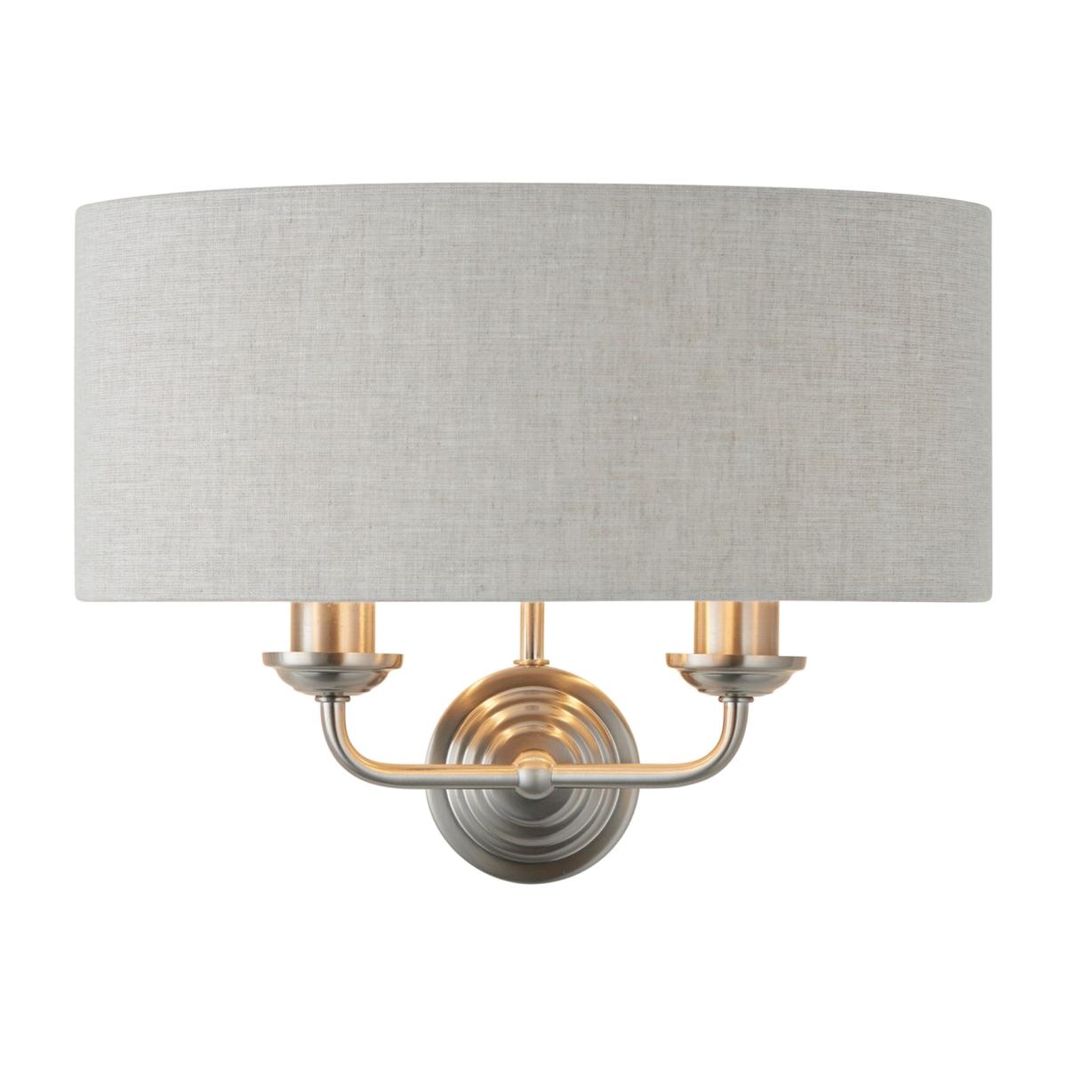 The Highclere twin wall light is a sophisticated mix of natural linen fabric with a reflective brushed metallic inner and brushed chrome metalwork. This statement wall light is the perfect timeless addition to modern and classic homes of today.