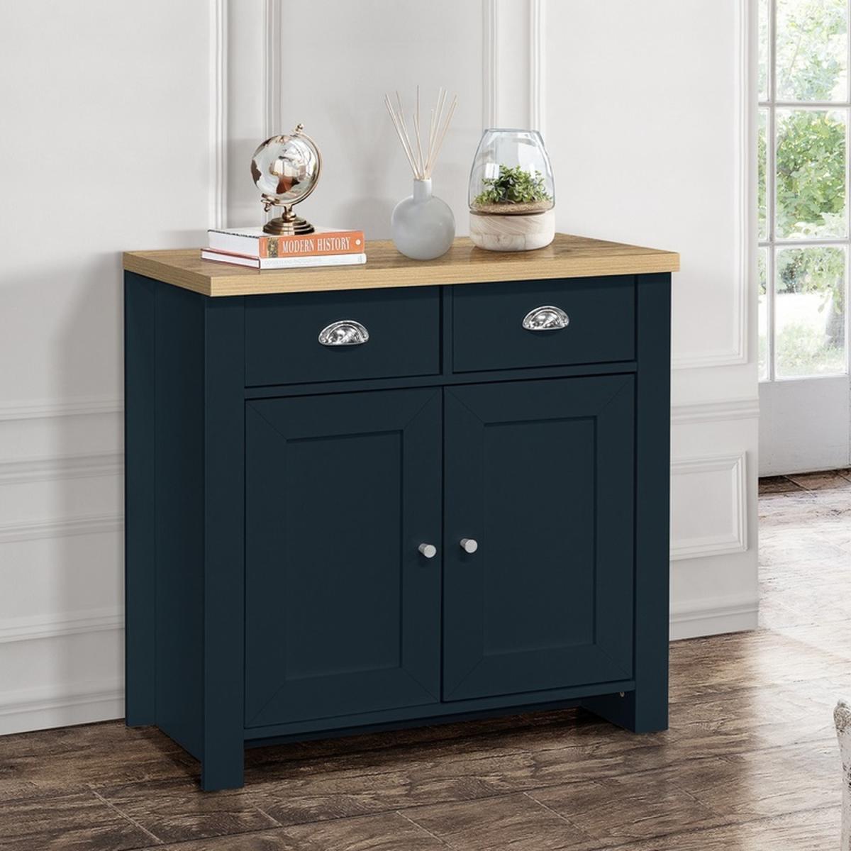 Inspired by classic farmhouse furniture the Highgate range has been designed to complement both modern and traditional homes. The Highgate range is modern, practical, affordable furniture and with stylish silver handles looks fantastic too. Available in cream oak, grey oak and navy oak this range will suite a wide array of interiors. An elegant storage solution for the living or dining room, this Highgate 2 Door 2 Drawer Sideboard is a great way to keep your home looking neat and tidy. Featuring 4 compartment area's making it ideal for both small and large items. The drawers are finished off with silver cup and square handles. Care instructions Wipe carefully with a soft, dry cloth.