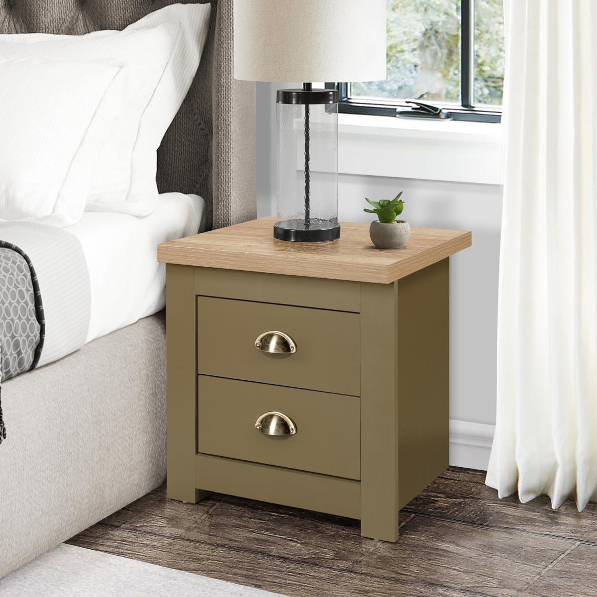 Inspired by classic farmhouse furniture the Highgate range has been designed to complement both modern and traditional homes. Available in cream oak, grey oak and navy oak this range will suite a wide array of interiors. The Highgate 2 drawer bedside features 2 handy drawers ideal for storing away any belongings. The drawers are finished off with beautiful silver cup handles. Care instructions Wipe carefully with a soft, dry cloth.