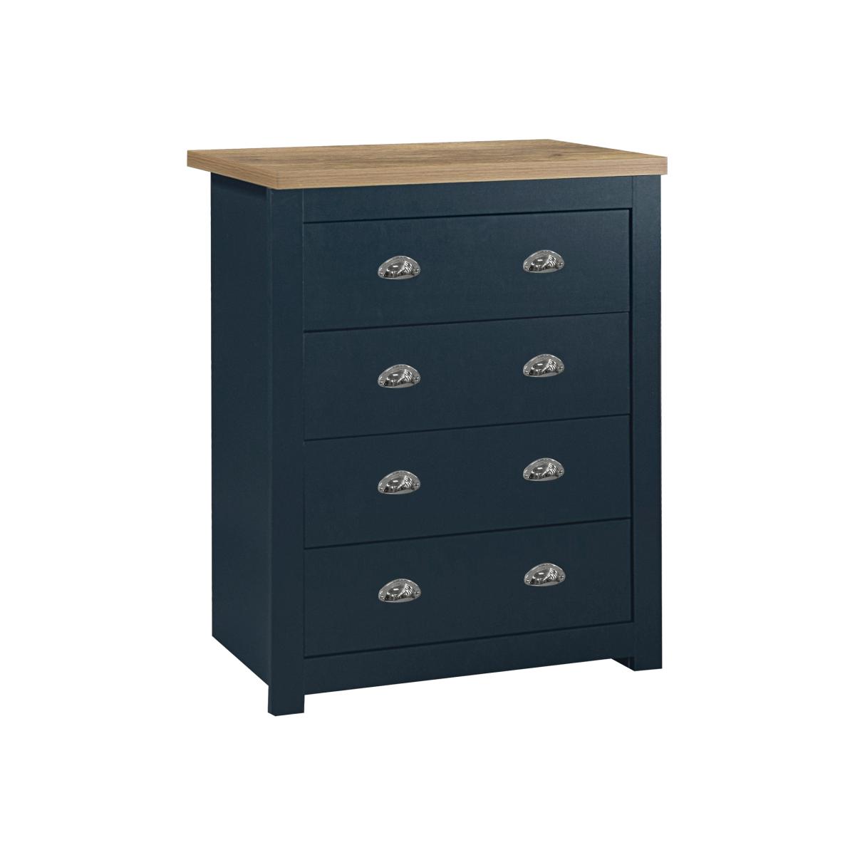 Highgate 4 Drawer Chest - Navy Blue & Oak