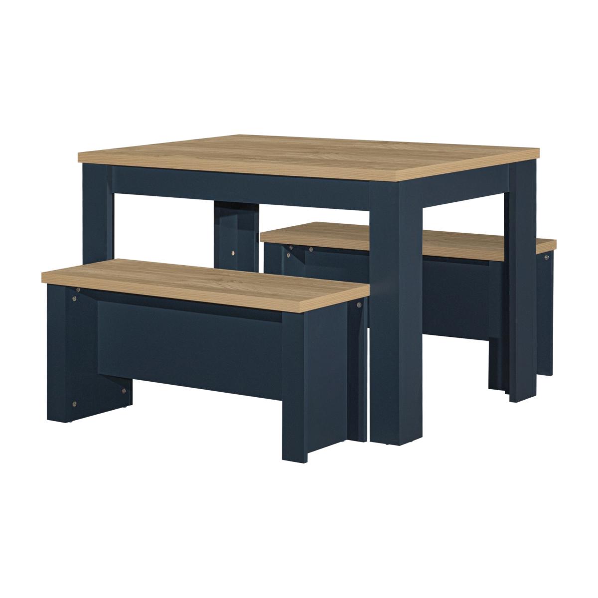Inspired by classic farmhouse furniture the Highgate range has been designed to complement both modern and traditional homes. The Highgate range is modern, practical, affordable furniture which looks fantastic too. Available in cream oak, grey oak and navy oak this range will suite a wide array of interiors. This is an elegant dining table that will look beautiful in your dining room or even your kitchen. The beauty of a table and bench set-up is that you can squeeze plenty of people in, making it perfect for families as well as those who enjoy entertaining. Care instructions Wipe carefully with a soft, dry cloth.
