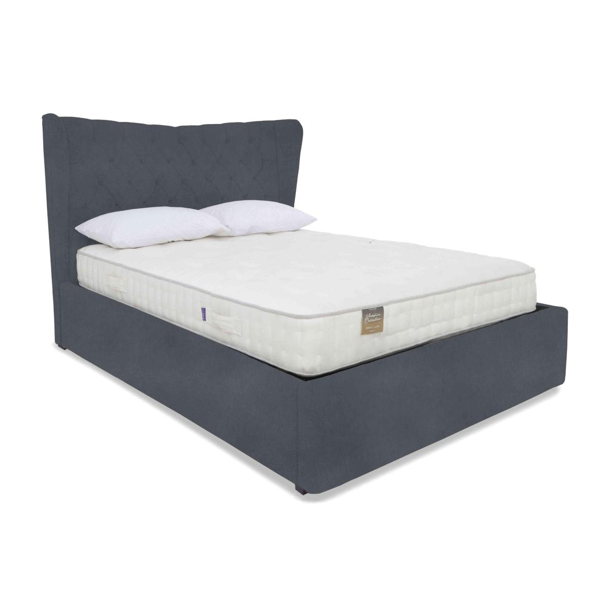 This beautiful ottoman bed frame brings together traditional elegance – in the form of that gorgeous winged headboard – and smooth electric- powered ottoman storage. Handcrafted. Why you'll love it Contemporary elegance with easy- access practical storage. The ottoman lift mechanism is electric powered. Beautiful winged headboard is sumptuously cushioned. Accentuated with lavish buttoning. Set on dark ebony wood feet. Deep base for maximum underbed storage. Breathable slatted wood base means a cooler night’s sleep. In a wide choice of upholstery fabrics. In small double, double, king and super king bed sizes. Handmade in the UK. This Highgrove electric ottoman bed frame is a Furniture Village exclusive. What you need to know Mattress sold separately. Mattress base is composed of 28 wood slats in king size. This ottoman bed frame opens at the end. Maximum mattress weight is 80 kg for all sizes. Please keep hands clear of the mechanism when opening and closing the ottoman. Do not sit on the foot end of this ottoman bed frame when opening. Clean regularly using a soft brush or vacuum with the curtain attachment. Deal with any spills promptly. Professional cleaning advised for oil- and grease- based stains. Some fabrics can show wear on areas of more use or in direct sunlight. Flattening and shading of heavy wear areas on pile fabrics like velvet is unavoidable. Be sure to brush pile fabrics only in the direction of the pile. Please read our upholstery care guide for more advice.