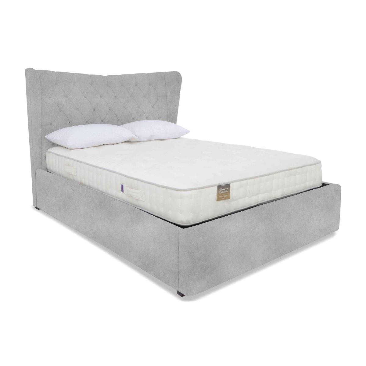 We love everything about this fabulous ottoman bed frame. It looks fabulous and that headboard is a real showstopper. And the ottoman storage space is just so roomy. Why you'll love it This luxurious ottoman bed frame will transform your bedroom. Contemporary elegance with practical storage. Showstopping tall headboard with gently curved wings. Sumptuously cushioned with sophisticated fluting. Set on dark ebony wood feet. Deep base for maximum storage capacity. Breathable slatted base promises a cooler night’s sleep. In a wide choice of upholstery fabrics. Handmade in the UK. The Highgrove Bourne ottoman bed frame is a Furniture Village exclusive. What you need to know Mattress sold separately. Wooden slat support. 28 slats in king size. Ottoman opens at the end. In small double, double, king and super king sizes. Please keep hands clear of the mechanism when opening and closing. Clean regularly using a soft brush or vacuum with the curtain attachment. Deal with any spills promptly. Professional cleaning advised for oil- and grease- based stains. Some fabrics can show wear on areas of more use or in direct sunlight. Flattening and shading of heavy wear areas on pile fabrics like velvet is unavoidable. Be sure to brush pile fabrics only in the direction of the pile. Please read our upholstery care guide for more advice.