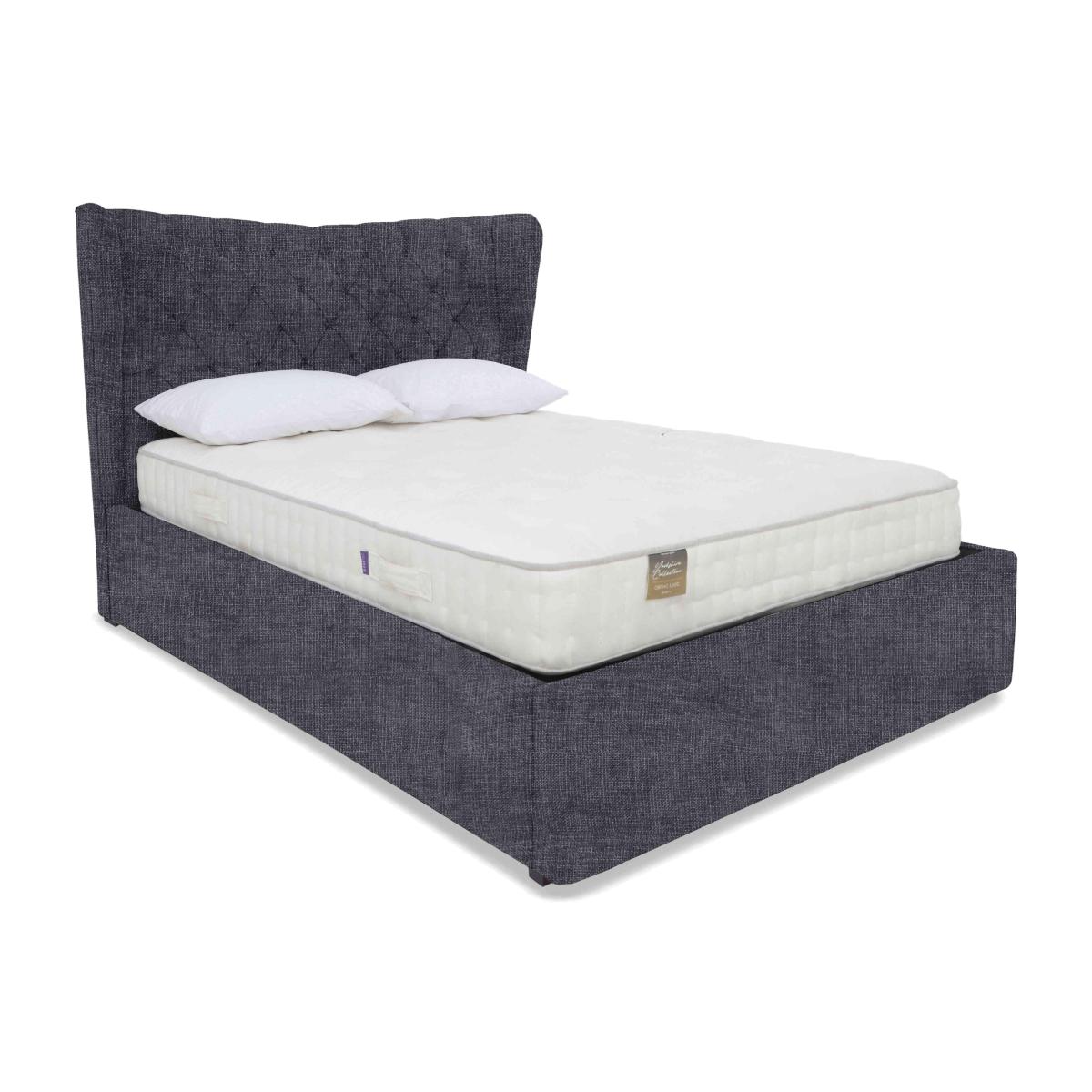 We love everything about this fabulous ottoman bed frame. It looks fabulous and that headboard is a real showstopper. And the ottoman storage space is just so roomy. Why you'll love it This luxurious ottoman bed frame will transform your bedroom. Contemporary elegance with practical storage. Showstopping tall headboard with gently curved wings. Sumptuously cushioned with sophisticated fluting. Set on dark ebony wood feet. Deep base for maximum storage capacity. Breathable slatted base promises a cooler night’s sleep. In a wide choice of upholstery fabrics. Handmade in the UK. The Highgrove Bourne ottoman bed frame is a Furniture Village exclusive. What you need to know Mattress sold separately. Wooden slat support. 28 slats in king size. Ottoman opens at the end. In small double, double, king and super king sizes. Please keep hands clear of the mechanism when opening and closing. Clean regularly using a soft brush or vacuum with the curtain attachment. Deal with any spills promptly. Professional cleaning advised for oil- and grease- based stains. Some fabrics can show wear on areas of more use or in direct sunlight. Flattening and shading of heavy wear areas on pile fabrics like velvet is unavoidable. Be sure to brush pile fabrics only in the direction of the pile. Please read our upholstery care guide for more advice.