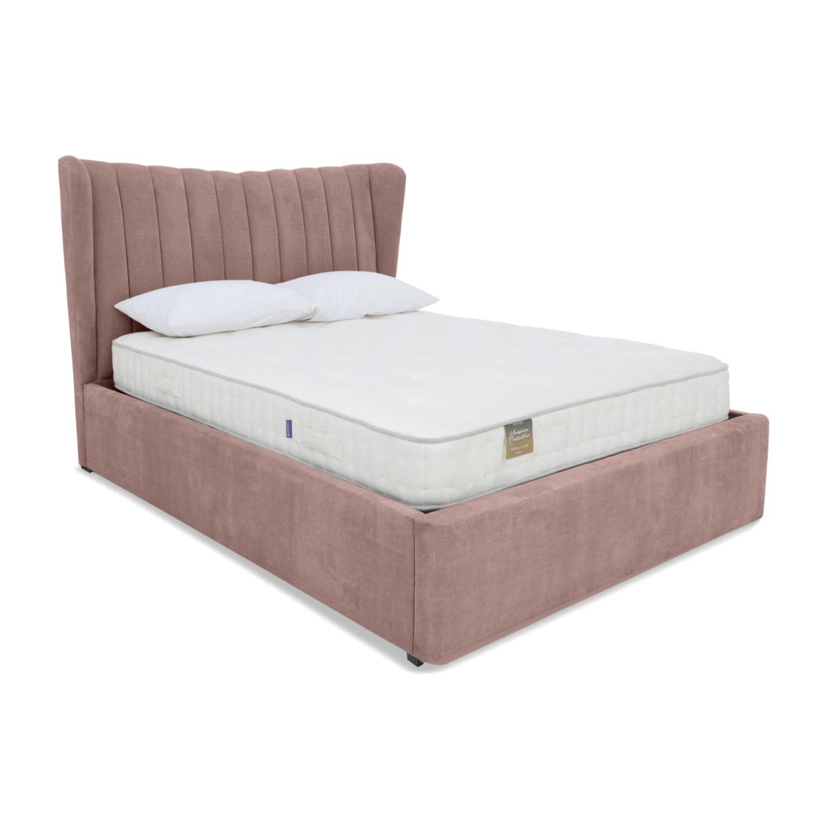 Make a statement with this bed frame’s winged and fluted headboard and enjoy easy- access extra storage thanks to the electric- powered ottoman mechanism. Handcrafted. Why you'll love it Contemporary elegance with easy- access practical storage. The ottoman lift mechanism is electric powered. Showstopping tall headboard with gently curved wings. Sumptuously cushioned with sophisticated fluting. Set on dark ebony wood feet. Deep base for maximum storage capacity. Breathable slatted wood base means a cooler night’s sleep. In a wide choice of upholstery fabrics. In small double, double, king and super king bed sizes. Handmade in the UK. This Highgrove electric ottoman bed frame is a Furniture Village exclusive. What you need to know Mattress sold separately. Mattress base is composed of 28 wood slats in king size. This ottoman bed frame opens at the end. Maximum mattress weight is 80 kg for all sizes. Please keep hands clear of the mechanism when opening and closing the ottoman. Do not sit on the foot end of this ottoman bed frame when opening. Clean regularly using a soft brush or vacuum with the curtain attachment. Deal with any spills promptly. Professional cleaning advised for oil- and grease- based stains. Some fabrics can show wear on areas of more use or in direct sunlight. Flattening and shading of heavy wear areas on pile fabrics like velvet is unavoidable. Be sure to brush pile fabrics only in the direction of the pile. Please read our upholstery care guide for more advice.