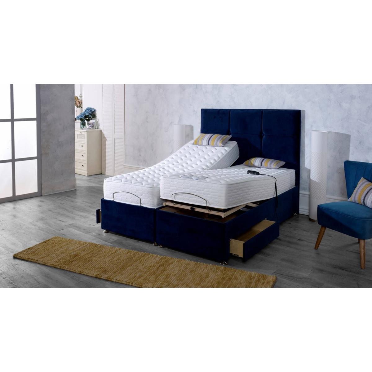 Note - The headboard pictures is not included but is available to purchase separately. The base or frame pictured in the image may not be representative of the specific base you require. Please contact us for more information, if needed. The new Highgrove Comfort Control range of adjustable electric beds combine the latest bed motion technology with a tailored range of mattress comfort options. The 5 part action comes with a re-assuring 5 year guarantee, with the 2 motor system working effortlessly to ensure that the bed can be easily adjusted to suit your individual requirements for comfort and support. All Comfort Control models feature strong birch plywood slats, which automatically flex to support each body shape and position, with firmness adjuster zones built in for even greater flexibility. With an easy function handset and built-in safety features, we're sure that the Comfort Control range will be a welcome addition to your home. Part of the Comfort Control Collection from Highgrove Beds, the Highgrove Burton Foam+ Memory Mattress is new for 2020. The Burton Foam+ Memory Mattress is made up of high performance foam plus a layer of memory foam which provides long lasting comfort, moulding perfectly to the sleepers body. The foam is specifially engineered adaptive deep RX Foam Core specfically designed for maximum comfort control. The mattress is complete with a luxury breathable stretch fabric cover for that extra special comfort touch and smooth, uninterupted sleep. The single-sided mattress construction means that there is no need to flip your mattress. Pro-long the life of your mattress by regualarly rotating 180 degrees to maximise mattress comfort and get the most out of your mattress. Available in Small Single, Single and Small Double sizes. Drawers not included Electric Adjustable Bed Memory Foam Mattress Comes with a 5 Year Warranty for that extra piece of mind. Smooth 5 part motor action 2 motor system - one for the head/back, one for the legs/feet - all within one casing. Corded handset 25 stone weight capacity Padded feet - non slip Strong slatted base with adjustable firmness slider for lumbar region Please note, all screens vary in colour reproduction and whilst every effort has been made to display the colour as accurately as possible it is for guidance only.