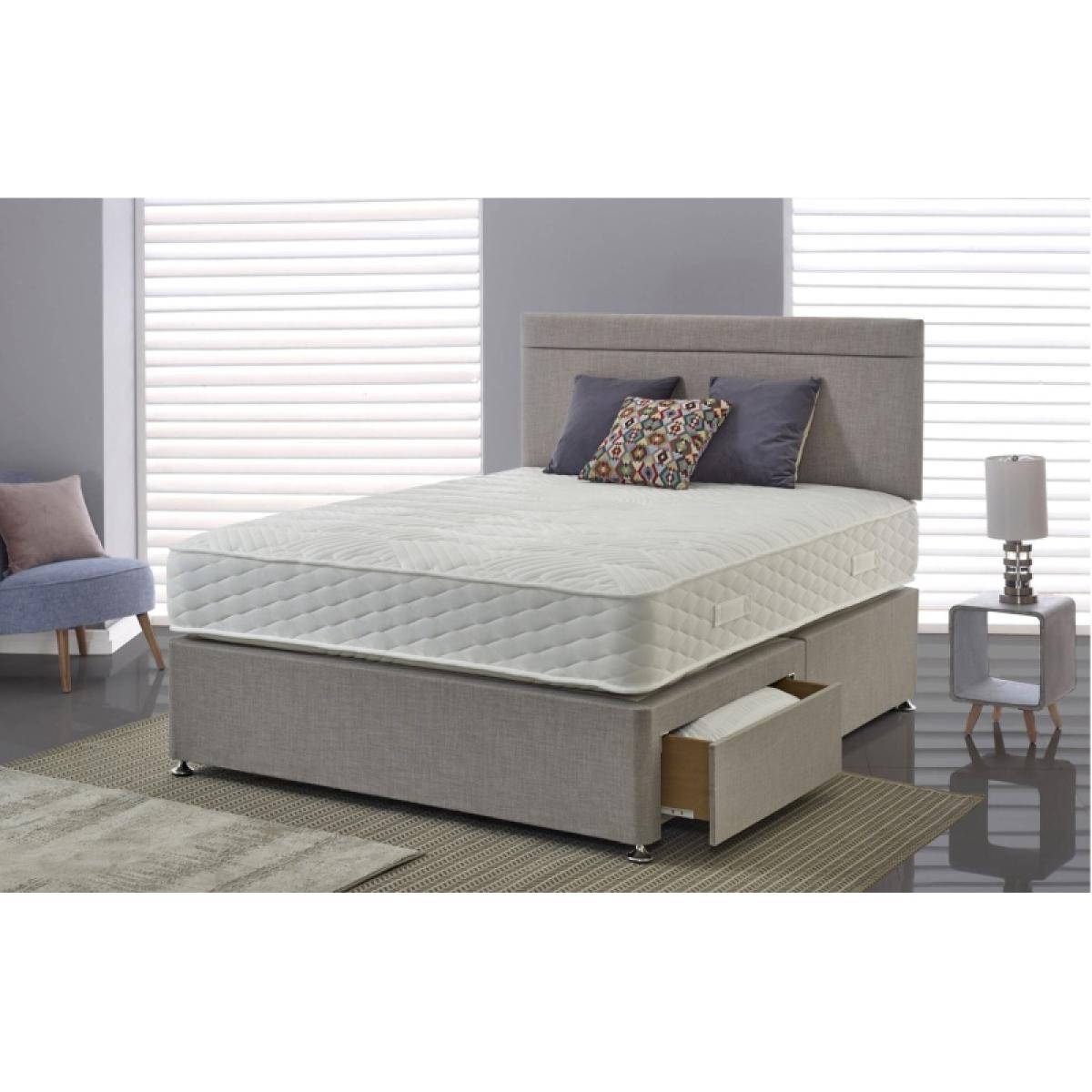 Please note, the headboard pictured is not included but is available to purchase separately. 1000 individual engineered Pocket springs (150cm), provide underlying support for a great night's sleep on this Highgrove Celestial 1000 mattress. High density Advanced Foam Comfort mattress with a quality breathable, micro-quilted knitted fabric cover, providing a luxury surface feel. Sleep Both Sides - please turn regularly to maximise performance. FEATURES: Mattress firmness rating - Medium Rolled to go mattress Suitable for a wide range of bed frames Quality, breathable knitted fabric cover High Density Advanced foam comfort Spring count - 1000 (based on 150cm size) 5 Year Warranty Choose from a selection of fabrics and colours Choose from a variety of storage and non-storage divan options SIZE: Mattress Depth - 24cm Small Single – W 75cm x L 190cm Single – W 90cm x L 190cm Small Double – W 120cm x L 190cm Double – W 135cm x L 190cm King – W 150cm x L 200cm Super King – W 180cm x L 200cm All screens vary in colour reproduction and whilst every effort has been made to display the colour as accurately as possible it is for guidance only.