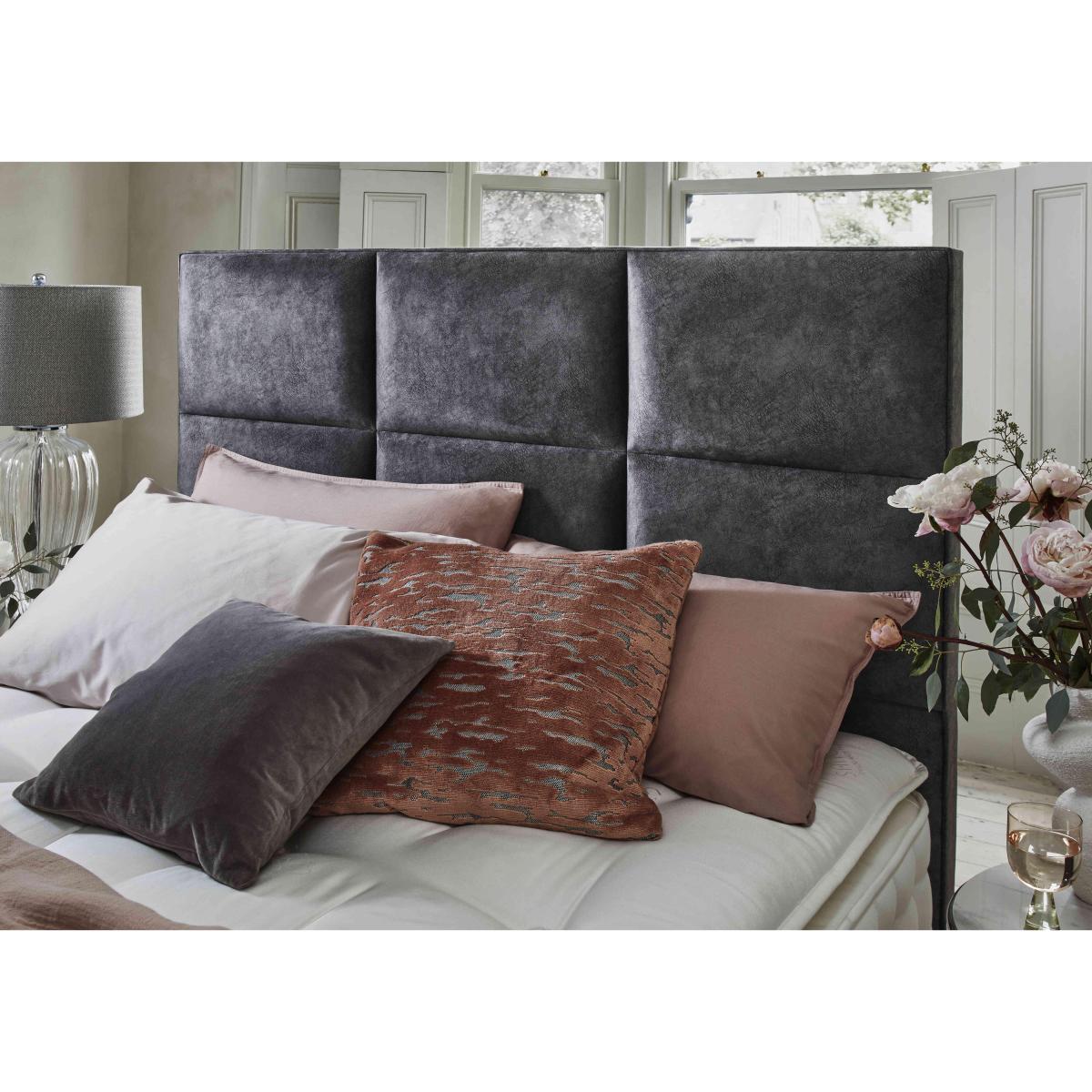 The Sanctum Nature 2000 collection range epitomises luxury, from top to bottom and side to side. Pocket sprung mattresses with optional pillow tops feature all-natural fillings that include cooling British wool, cotton, silk and cashmere, and have sturdy side-stitched and ventilated borders. Upholstered divan bases have sprung edges for enhanced mattress support, and a choice of storage drawers. The collection also includes ready-made divan sets that include a mattress, storage base and stylish floor standing headboard. They're the easiest way to transform both the quality of your sleep and the look of your bedroom. The Sanctum Nature 2000 range is handcrafted by Highgrove. Minimal vertical and horizontal stitching gives this modern floor standing headboard a very on-trend look. Luxuriously cushioned, it’s available in a choice of upholstery fabrics. Why you'll love it This striking floor standing headboard makes any divan bed stand out. Luxury bedroom style. Contemporary flair with understated geometric look. Deep cushioning. Upholstered in a choice of on-trend fabrics. Available in all bed sizes from small double to super king. Made in the UK by Highgrove. This floor standing headboard is part of our Sanctum collection. What you need to know Compatible with all standard divan bases. In small double, double, king and super king bed sizes. Some fabrics can show wear on areas of more use or in direct sunlight. Clean regularly using a soft brush or vacuum with the curtain attachment. Deal with any spills promptly. Professional cleaning advised for oil- and grease-based stains. Please read our upholstery care guide for more advice.