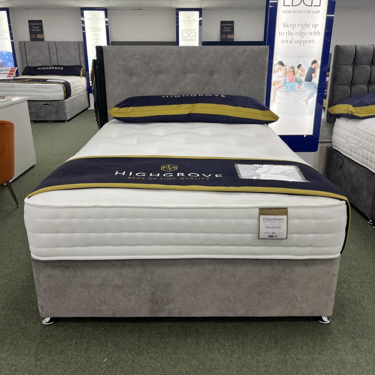 Note - The headboard pictured is not included but is available to purchase separately. The base or frame pictured in the image may not be representative of the specific base you require. Please contact us for more information, if needed. The Highgrove Greenwich Mattress & Divan Set has 1000 advanced pocket springs, and a luxurious Soft as Silk knitted stretch fabric cover which provides natural breathability and a unique surface comfort feel. Traditional Hand-Tufted mattress with pure woollen tufts to secure the sumptuous layers of upholstery. Sleep both sides to extend mattress life and performance - please turn regularly Features: Soft Tension Mattress – Good for side sleepers. The softest level of support Luxurious stretch fabric and a lavish mix of natural upholstery enhances surface comfort. The Highgrove pocket spring system provides total body support to ensure correct spinal alignment and further enhances sleep quality. Sleep both sides to extend mattress life and performance - please turn and rotate regularly Suitable for up to 14-20 stone per side of mattress (left or right) 5 Year guarantee Choice of storage options Choice of base fabrics Mattress Dimensions Mattress depth - 25cm Single - 90cm (w) x 190cm (l) Double - 135cm (w) x 190cm (l) King - 150cm (w) x 200cm (l) Superking - 180cm (w) x 200cm (l) All screens vary in colour reproduction and whilst every effort has been made to display the colour as accurately as possible it is for guidance only.