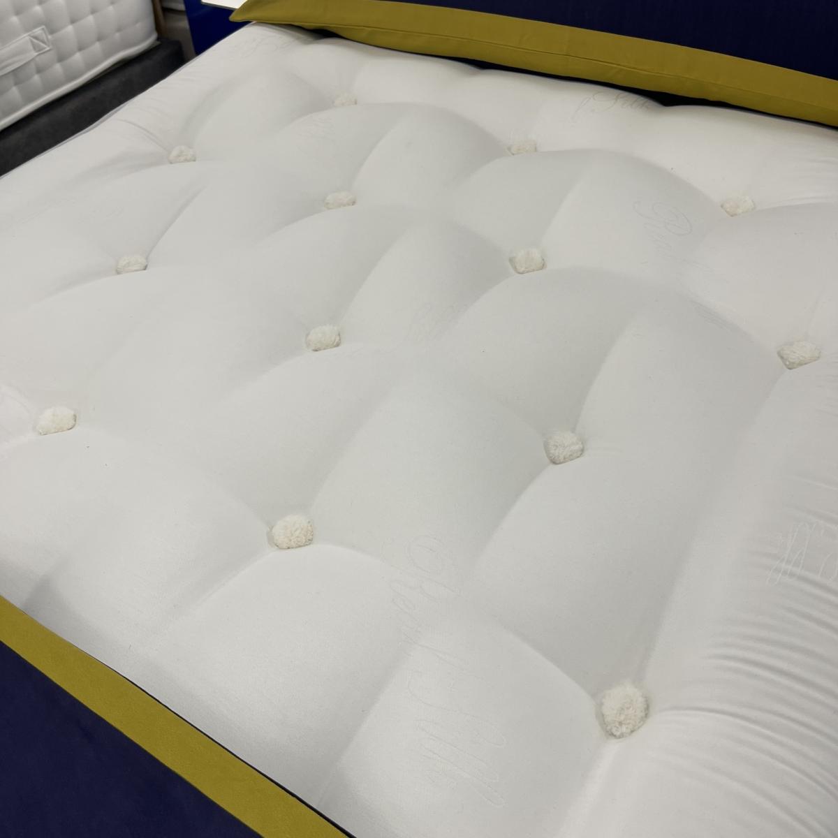 Note - The headboard pictured is not included but is available to purchase separately. The base or frame pictured in the image may not be representative of the specific base you require. Please contact us for more information, if needed. The Highgrove Islington Mattress features a luxurious and lavish viscose damask warp and weft covered tufted mattress which allows the spine to rest in the comfort layer reducing pressure points. The mattress contains wool, cotton, cashmere and silk fillings for a natural body insulator feel providing opulent surface comfort-warm in winter, cool in summer. Incorporating 2000 advanced pocket springs and the Eco AdvantEdge spring system where the pockets on the outside edge are firmer than the inner core to prevent 'roll-off' or 'roll-together' giving total mattress support right to the very edge ensuring correct spinal alignment to enhance sleep quality. This is a Non turn mattress and only requires rotating. Features: Firm - Good for people who change sleeping position. Approved by the National Bed Federation (NBF) ensuring it has been manufactured to the highest UK standards A luxurious Pillow- Top Surface with a viscose damask cover for sumptuous natural deep comfort. Eco AdvantEdge Pocket Sprung System, Fully Encased springs to provide a wider sleep surface Individually encased pocket springs ensures support and prvrnts 'Roll Together' Designed as a no turn mattress- regulary rotate 180° To extend mattress life. Free 5 year Warranty for total peace of mind Choice of storage options Choice of base fabrics Dimensions: Mattress depth - 28cm Single - 90cm (w) x 190cm (l) Double - 135cm (w) x 190cm (l) King - 150cm (w) x 200cm (l) Superking - 180cm (w) x 200cm (l) All screens vary in colour reproduction and whilst every effort has been made to display the colour as accurately as possible it is for guidance only.