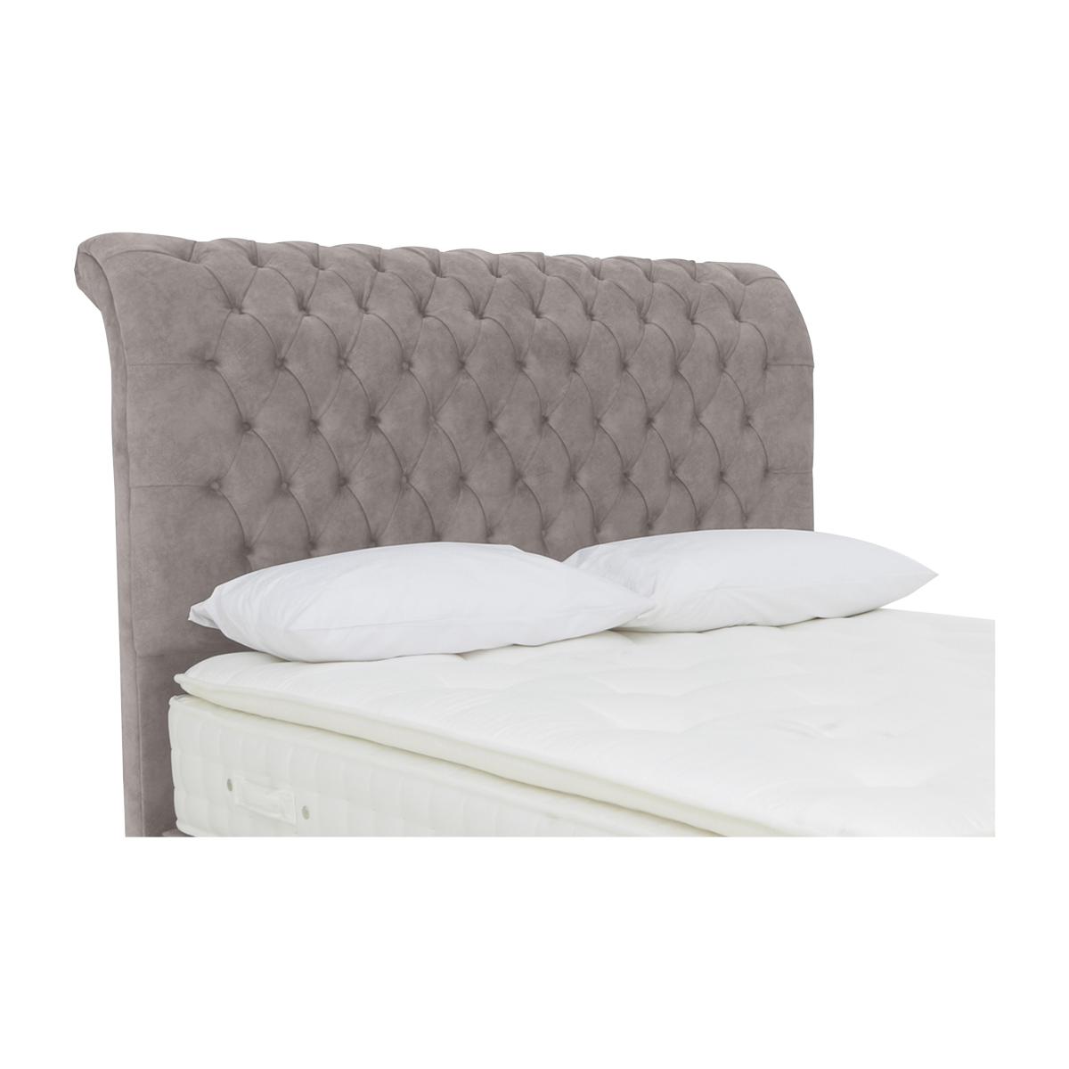 The Sanctum Nature 2000 collection range epitomises luxury, from top to bottom and side to side. Pocket sprung mattresses with optional pillow tops feature all-natural fillings that include cooling British wool, cotton, silk and cashmere, and have sturdy side-stitched and ventilated borders. Upholstered divan bases have sprung edges for enhanced mattress support, and a choice of storage drawers. The collection also includes ready-made divan sets that include a mattress, storage base and stylish floor standing headboard. They're the easiest way to transform both the quality of your sleep and the look of your bedroom. The Sanctum Nature 2000 range is handcrafted by Highgrove. Taking inspiration from the Chesterfield sofa, this striking floor standing headboard has a rolled top and deep buttoning. In a choice of elegant fabrics and colours. Why you'll love it This curvaceous floor standing headboard with buttoning will turn heads. Luxury bedroom style. Roll top Chesterfield-style elegance. Deep cushioning. Upholstered in a choice of on-trend fabrics. Available in all bed sizes from small double to super king. Made in the UK by Highgrove. This floor standing headboard is part of our Sanctum collection. What you need to know Compatible with all standard divan bases. In small double, double, king and super king bed sizes. Some fabrics can show wear on areas of more use or in direct sunlight. Clean regularly using a soft brush or vacuum with the curtain attachment. Deal with any spills promptly. Professional cleaning advised for oil- and grease-based stains. Please read our upholstery care guide for more advice.