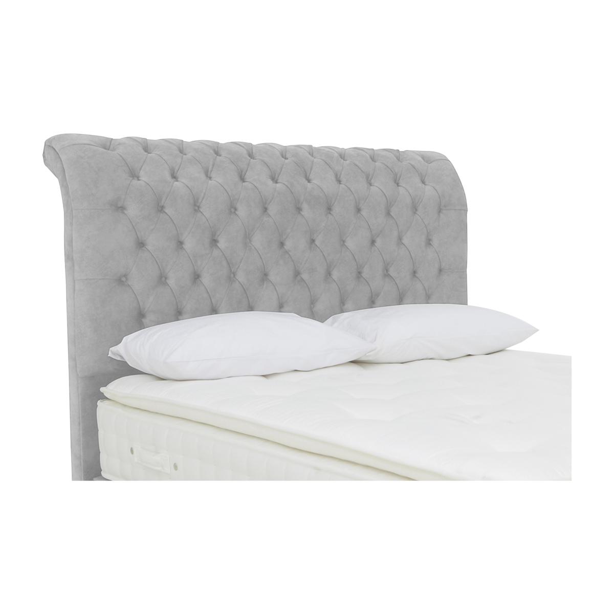 The Sanctum Nature 2000 collection range epitomises luxury, from top to bottom and side to side. Pocket sprung mattresses with optional pillow tops feature all-natural fillings that include cooling British wool, cotton, silk and cashmere, and have sturdy side-stitched and ventilated borders. Upholstered divan bases have sprung edges for enhanced mattress support, and a choice of storage drawers. The collection also includes ready-made divan sets that include a mattress, storage base and stylish floor standing headboard. They're the easiest way to transform both the quality of your sleep and the look of your bedroom. The Sanctum Nature 2000 range is handcrafted by Highgrove. Taking inspiration from the Chesterfield sofa, this striking floor standing headboard has a rolled top and deep buttoning. In a choice of elegant fabrics and colours. Why you'll love it This curvaceous floor standing headboard with buttoning will turn heads. Luxury bedroom style. Roll top Chesterfield-style elegance. Deep cushioning. Upholstered in a choice of on-trend fabrics. Available in all bed sizes from small double to super king. Made in the UK by Highgrove. This floor standing headboard is part of our Sanctum collection. What you need to know Compatible with all standard divan bases. In small double, double, king and super king bed sizes. Some fabrics can show wear on areas of more use or in direct sunlight. Clean regularly using a soft brush or vacuum with the curtain attachment. Deal with any spills promptly. Professional cleaning advised for oil- and grease-based stains. Please read our upholstery care guide for more advice.