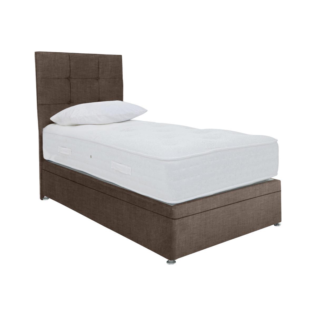 The Sleep Story by Highgrove Luxury 2000 range delivers luxury comfort at an impressively affordable price. Inside the hypoallergenic mattress is a luxurious blend of natural wool, cotton, silk and cashmere for sumptuous comfort and 2000 pocket springs for total body support. This design encourages correct spinal alignment and relieves pressure, so it’s ideal for those looking for more support from their mattress. For additional comfort, the mattress is finished with a super-soft and breathable Tencel™ cover which keeps you cool and comfortable through the night. A range of divan bases are available in a selection of contemporary colours and come with a variety of space-saving storage options. Expertly handcrafted in the UK exclusively for Furniture Village. 2000 pocket springs for impressive support and spinal alignment. Luxurious blend of wool, cotton, silk and cashmere for indulgent comfort. Handcrafted in Britain. Contemporary stylish divans with variety of ottoman storage options. Headboard is an optional extra. Discover indulgent pocket sprung comfort handcrafted in the UK at a very comfortable price with the Sleep Story by Highgrove Luxury 2000 Side Ottoman Divan Set. Designed to give you a premium sleep experience, this hypoallergenic mattress is expertly handcrafted right here in the UK. A sumptuous natural blend of silk, wool, cotton and cashmere creates a wonderfully cushioned feel while 2000 pocket springs deliver effective total body support. They evenly distribute your weight while promoting correct spinal alignment, so you always wake up fully rested. Finally, an incredibly soft cover of breathable Tencel™ completes your comfort, creating a cool and cushioned sleep surface. Turn the mattress regularly to promote long-lasting comfort. Divan bases designed to suit every bedroom come in a beautiful variety of colours and with the space-saving addition of spacious ottoman storage. The Sleep Story by Highgrove Luxury 2000 Side Ottoman Divan Set is part of the Sleep Story by Highgrove Luxury 2000 range which offers premium support and comfort with the indulgent luxury of all-natural materials. Product images are representative. Find out more. Please note. The mattress should be aired for four hours after delivery to freshen and remove any aroma from storage. It may take time for your mattress to attain its full size once the springs have settled to the correct position. This is due to the mattress being upright during transit. Settlement of fillings and indentations caused by body weight compressing the fillings are natural and not considered defects. This can be minimised by regular rotating and turning.
