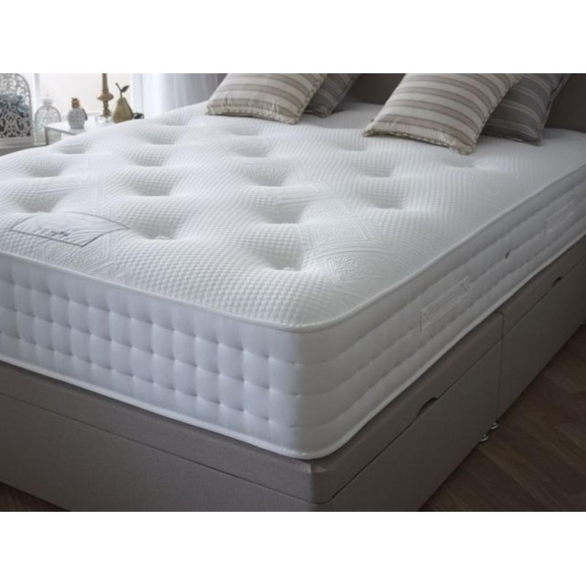 Note - The headboard pictured is not included but is available to purchase separately. The base or frame pictured in the image may not be representative of the specific base you require. Please contact us for more information, if needed. Luxurious stretch fabric and a lavish mix of natural upholstery enhances surface comfort. The Highgrove pocket spring system provides total body support to ensure correct spinal alignment and further enhances sleep quality. Sleep both sides to extend mattress life and performance - please turn and rotate regularly Suitable for up to 14-20 stone per side of mattress (left or right) 5 Year guarantee Choice of storage options Choice of base fabrics Mattress Dimensions Mattress depth - 25cm Single - 90cm (w) x 190cm (l) Double - 135cm (w) x 190cm (l) King - 150cm (w) x 200cm (l) Superking - 180cm (w) x 200cm (l) All screens vary in colour reproduction and whilst every effort has been made to display the colour as accurately as possible it is for guidance only.
