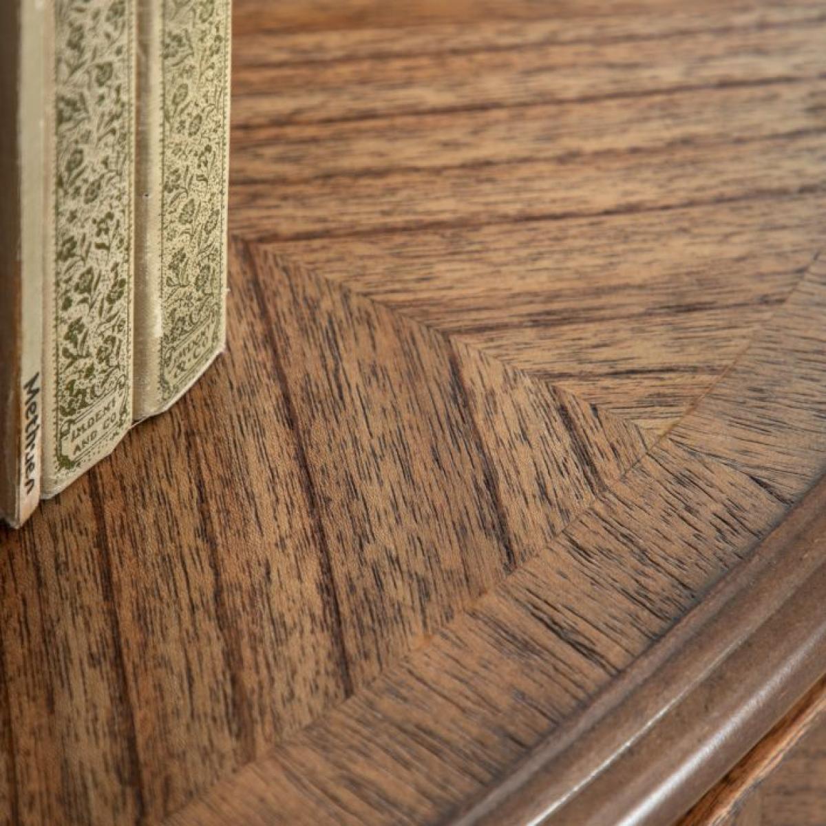 With a sophisticated half-moon shape, this console table is perfectly suited to bedrooms, hallways or any living space where you want to add a timeless elegant style with a modern touch. Offering a ‘new traditional’ look, this stunning console table features beautiful marquetry in exquisite tonal rich brown Mindy wood solids & veneers, with inlaid book-matched details. The bronze beehive drawer pulls and turned spindle legs add the finishing touch.