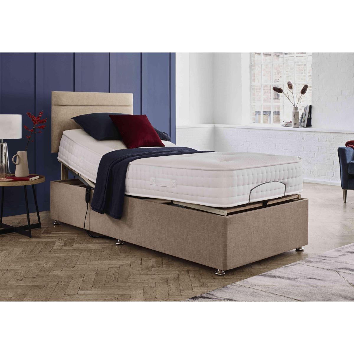 Take the stress out of sleeping with the Highgrove Motion range. With a choice of three divan sets, all offering an exceptional sleeping experience, it’s never been easier to fall asleep in perfect comfort – and style. Handcrafted in Britain with an innovative, expertly-engineered reflex foam or pocket sprung mattress topped with a luxury, breathable stretch fabric cover, each night’s sleep is sure to feel restful and refreshingly cool. Best of all, its adjustable action is operated by a smooth electric motor system which lets you find your perfect position with complete precision. The Highgrove Motion range is exclusively available online at Furniture Village. Precision adjustable bed with a reflex foam mattress. Beautifully upholstered divan with stylish headboard. Handcrafted in the UK exclusively for Furniture Village. The Highgrove Motion Reflex Adjustable Bed with Mirage Headboard is beautifully stylish and precision-engineered for comfort. This great-value divan set delivers everything you could want and more: space-saving storage, a stylish divan base, an elegant headboard and a high-performance, hypoallergenic mattress. Come home to incredible comfort every night with the reflex foam mattress engineered with an adaptive deep RX foam core which moulds perfectly to your body for long-lasting comfort throughout the night. The adjustable mechanism operated by a smooth electric motor lets you find your perfect position with complete ease and precision while the luxury, breathable stretch fabric cover keeps you cool and comfortable all night long. Handcrafted in Britain, the divan base and headboard are upholstered in a beautiful fabric which is available in three contemporary colours, while the elegant, clean-lined headboard creates a stylish silhouette in any bedroom. The Highgrove Motion Reflex Adjustable Bed with Mirage Headboard is part of the great-value Highgrove Motion Reflex collection, exclusively available online at Furniture Village. Product images are representative. Find out more. Please note. The mattress should be aired for four hours after delivery to freshen and remove any aroma from storage. It many take time for your mattress to attain its full size once it has settled into correct position. This is due to the mattress being upright during transit. Settlement of fillings and indentations caused by body weight compressing the fillings are natural and not considered defects. To extend the life of this single-sided mattress, please be sure to rotate it regularly. We recommend the use of a mattress protector.