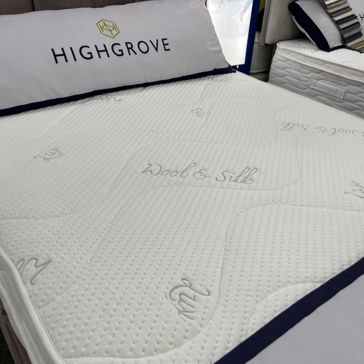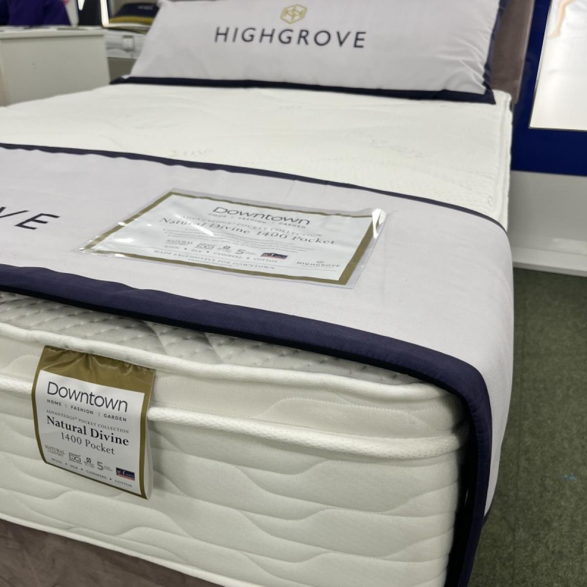 Please note, the headboard pictured is not included but is available to purchase seperately.  The Highgrove Natural Divine 14000 mattress features luxurious stretch fabric and a lavish mix of natural upholstery enhances surface comfort, fillings include Wool, Silk, Cashmere & Cotton Highgrove's Advanced Pocket Spring System with individually encased pocket springs provides proper underlying support. This mattress is also fully encapsulated with Highgrove AdvantEdge to provide a wider sleep surface with total comfort and support. Designed as a no-turn mattress - please regularly rotate 180° to extend mattress life and performance. FEATURES: Mattress Tension - Medium/Firm 1400 pocket springs (150cm size) individually adjust and support you as you sleep. Lavish layer of wool, silk, cashmere and cotton Luxurious stretch fabric cover Fully encapsulated to provide a wider sleep surface with total comfort and support No turn mattress 5 Year Warranty Choose from a selection of fabrics and colours Choose from a range of storage and non-storage options SIZES: Mattress Depth - 25cm Small Single - W 75cm x L 190cm Single - W 90cm x L 190cm Small Double - W 120cm x L 190cm Double - W 135cm x L 190cm King - W 150cm x L 200cm Super King - W 180cm x L 200cm All screens vary in colour reproduction and whilst every effort has been made to display the colour as accurately as possible it is for guidance only.