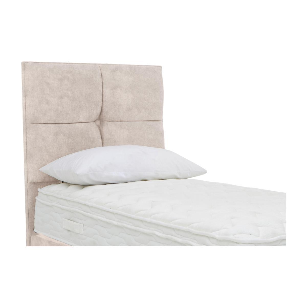 The Highgrove headboard range is proof that sumptuous bedroom style can still be affordable. The floor standing headboards in this collection showcase contemporary design and generous cushioning for the perfect combination of sleek good looks and practical comfort. Choose the boldly linear Highgrove Tracks, the contemporary buttoned Highgrove Dice, or the Highgrove Rubix with its deliberately oversized geometric look. Headboards are handcrafted in Britain exclusively for Furniture Village. Strikingly stylish, the Highgrove Rubix floor standing headboard brings bold designer style to your contemporary bedroom – and at a great-value price. Featuring minimally modern buttoning, this fully-upholstered headboard has a pleasing geometric design motif that’s accentuated by its generous cushioning. Handcrafted in Britain exclusively for Furniture Village, this headboard is available in all standard divan bed sizes. The Highgrove Rubix floor standing headboard is part of the Highgrove headboard collection, which offers several different headboard styles.