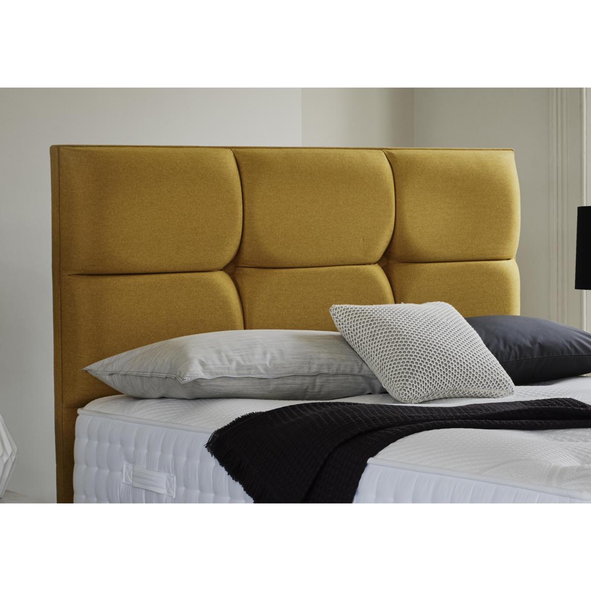The Highgrove headboard range is proof that sumptuous bedroom style can still be affordable. The floor standing headboards in this collection showcase contemporary design and generous cushioning for the perfect combination of sleek good looks and practical comfort. Choose the boldly linear Highgrove Tracks, the contemporary buttoned Highgrove Dice, or the Highgrove Rubix with its deliberately oversized geometric look. Headboards are handcrafted in Britain exclusively for Furniture Village. Strikingly stylish, the Highgrove Rubix floor standing headboard brings bold designer style to your contemporary bedroom – and at a great-value price. Featuring minimally modern buttoning, this fully-upholstered headboard has a pleasing geometric design motif that’s accentuated by its generous cushioning. Handcrafted in Britain exclusively for Furniture Village, this headboard is available in all standard divan bed sizes. The Highgrove Rubix floor standing headboard is part of the Highgrove headboard collection, which offers several different headboard styles.