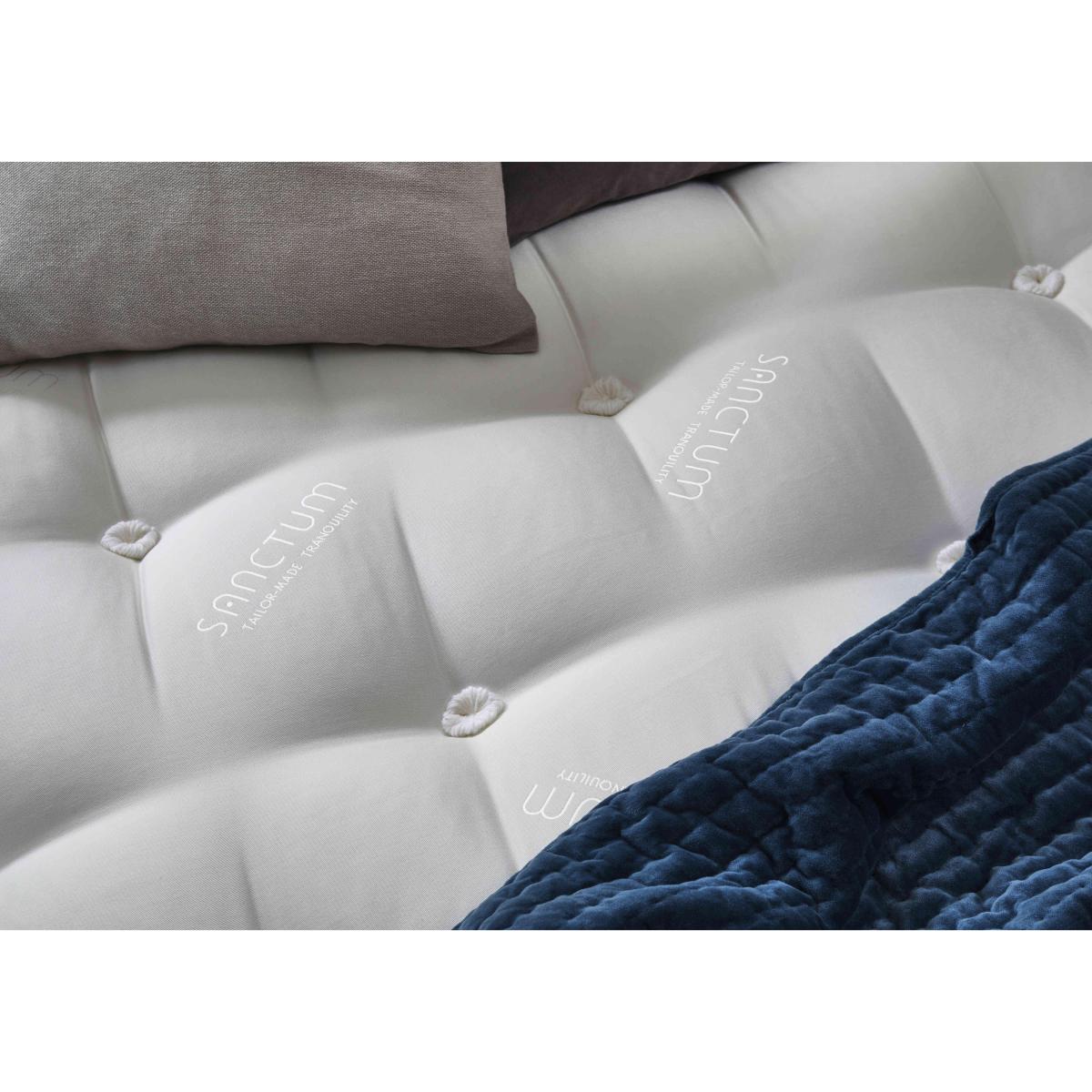 The Sanctum Nature 2000 collection range epitomises luxury, from top to bottom and side to side. Pocket sprung mattresses with optional pillow tops feature all-natural fillings that include cooling British wool, cotton, silk and cashmere, and have sturdy side-stitched and ventilated borders. Upholstered divan bases have sprung edges for enhanced mattress support, and a choice of storage drawers. The collection also includes ready-made divan sets that include a mattress, storage base and stylish floor standing headboard. They're the easiest way to transform both the quality of your sleep and the look of your bedroom. The Sanctum Nature 2000 range is handcrafted by Highgrove. Comfort, style and storage – this divan set includes a sprung-edge storage divan base, luxury pillowtop pocket spring mattress and even a tall, Chesterfield-style headboard. Why you'll love it This 2-drawer divan set with pillowtop mattress includes a headboard. Sleep in sumptuous luxury. Mattress has layers of all-natural fillings including cotton, cashmere, silk and British wool. Wool helps keep you cool in summer and warm in winter. 2000 pocket springs in king size for wonderful support. Integrated pillowtop provides an extra layer of cushioning comfort. Border has 2 rows of side-stitching for edge support, and vents for cooling airflow. Superior sprung-edge divan base provides full-width mattress support. Enjoy extra bedroom storage with 2 roomy and versatile built-in drawers. This divan set includes a sumptuous floor standing headboard. Roll top Chesterfield-inspired design with deep cushioning and beautiful buttoning. Choose from a wide range of on-trend upholstery fabrics and colours. Handmade in the UK by Highgrove. This 2-drawer divan set with mattress and headboard is part of the Sanctum Nature 2000 Pillowtop range. What you need to know Mattress type: Hybrid. Depth: 35 cm. Firmness: Medium. Springs: 2000 pocket springs in king size. Pillow top:Yes. Fillings: British wool, poly cotton, cashmere, silk. Cover: 100% polyester. Requires turning: No. Base type: Sprung edge with optional storage drawers. Sizes: Small double, double, king and super king. Mattress care:Air for 4 hours before using to remove any odour. Indentations caused by settlement of fillings or body weight are normal and are not considered defects. If used on a slatted bed frame, the space between slats must be no wider than 7.5 cm. Spaces wider than this may cause excess dipping of the mattress and invalidate the guarantee. Always use a mattress protector. Rotate regularly. Headboard and divan base care: Clean upholstery weekly using a soft brush or vacuum with the curtain attachment. Professional cleaning advised for oil- and grease-based stains. Divan bases are supplied in two halves for easier access.