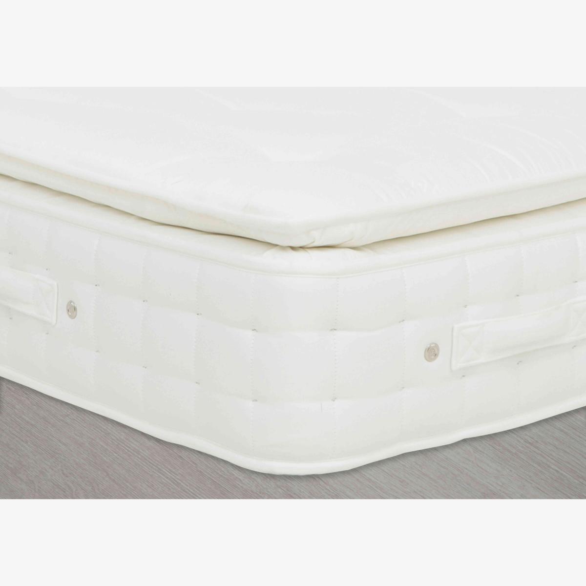 The Sanctum Nature 2000 collection range epitomises luxury, from top to bottom and side to side. Pocket sprung mattresses with optional pillow tops feature all-natural fillings that include cooling British wool, cotton, silk and cashmere, and have sturdy side-stitched and ventilated borders. Upholstered divan bases have sprung edges for enhanced mattress support, and a choice of storage drawers. The collection also includes ready-made divan sets that include a mattress, storage base and stylish floor standing headboard. They're the easiest way to transform both the quality of your sleep and the look of your bedroom. The Sanctum Nature 2000 range is handcrafted by Highgrove. It’s impossible not to sleep well on this beautiful luxury mattress with cushioning pillowtop, layers of natural feelings and supportive pocket springs. Why you'll love it Wonderful pillowtop mattress has all-natural filings and pocket spring support. Sleep in sumptuous luxury. Layers of all-natural fillings include cotton, cashmere, silk and British wool. Wool helps keep you cool in summer and warm in winter. 2000 pocket springs in king size for wonderful support. Integrated pillowtop provides an extra layer of cushioning comfort. Border has 2 rows of side-stitching for edge support, and vents for cooling airflow. Available in a choice of bed sizes. Handmade in the UK by Highgrove. This mattress is part of the Sanctum Nature 2000 Pillowtop range. What you need to know Mattress type: Hybrid. Depth: 35 cm. Firmness: Medium. Springs: 2000 pocket springs in king size. Pillow top:Yes. Fillings: British wool, poly cotton, cashmere, silk. Cover: 100% polyester. Requires turning: No. Sizes: Small double, double, king and super king. Mattress care:Air for 4 hours before using to remove any odour. Indentations caused by settlement of fillings or body weight are normal and are not considered defects. If used on a slatted bed frame, the space between slats must be no wider than 7.5 cm. Spaces wider than this may cause excess dipping of the mattress and invalidate the guarantee. Always use a mattress protector. Rotate regularly.