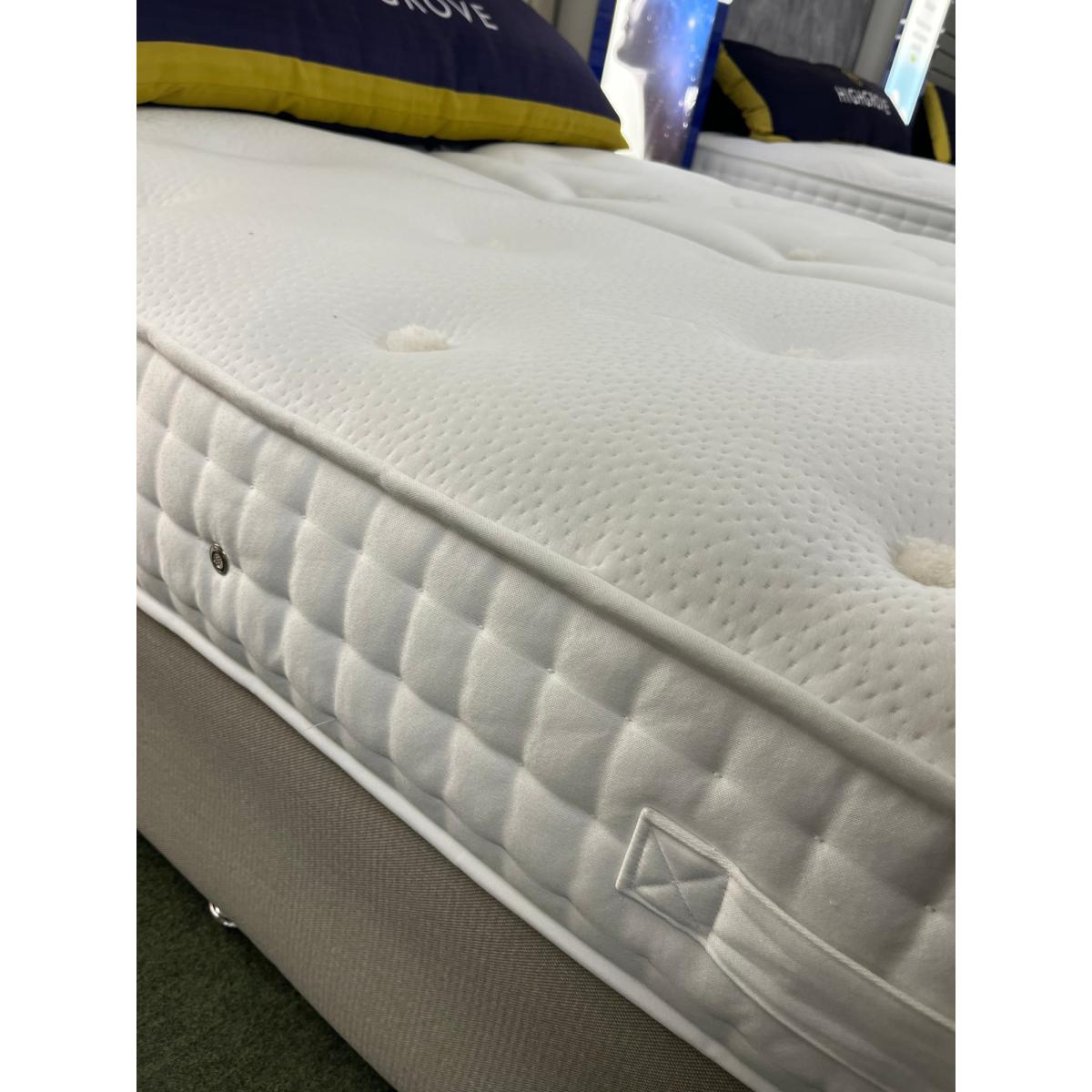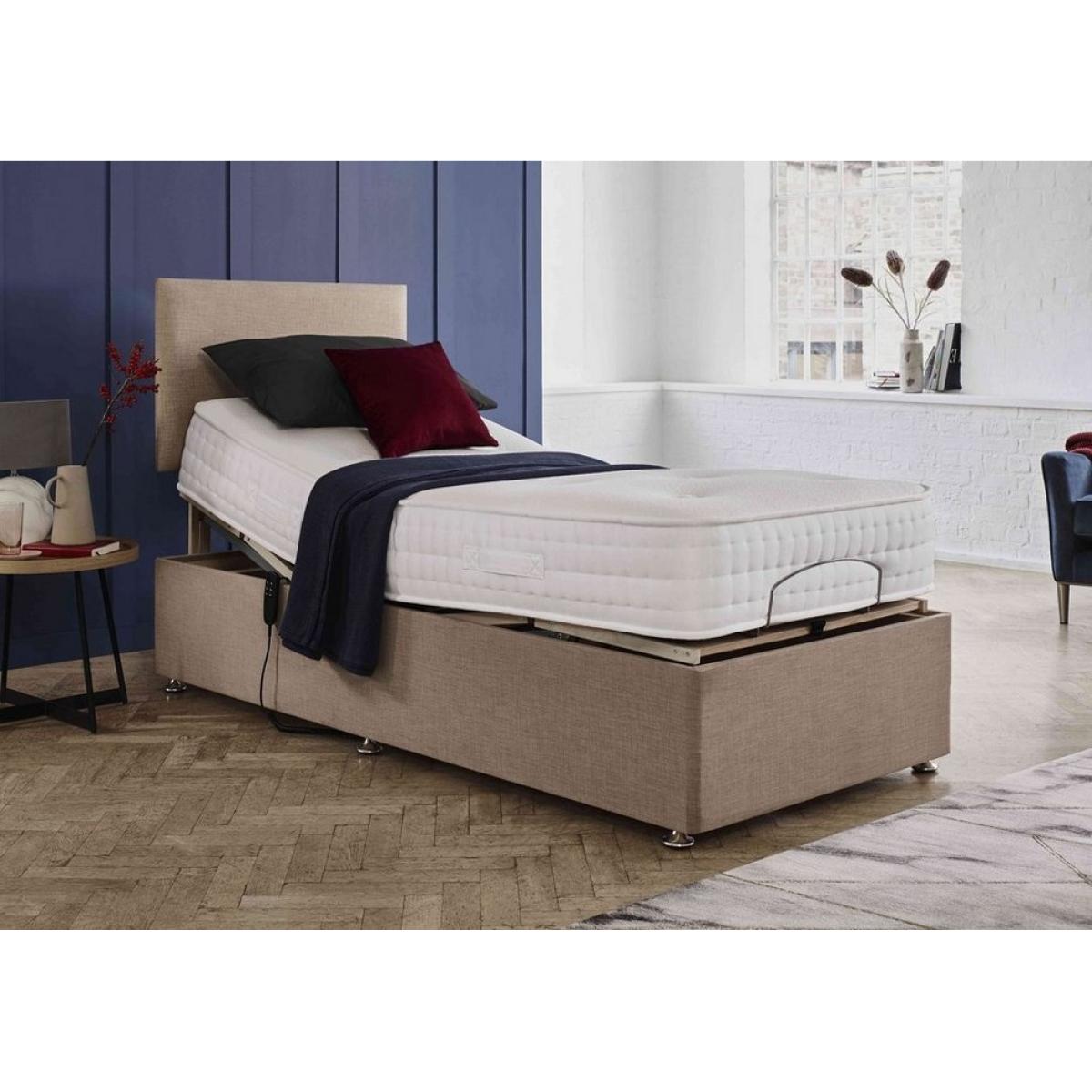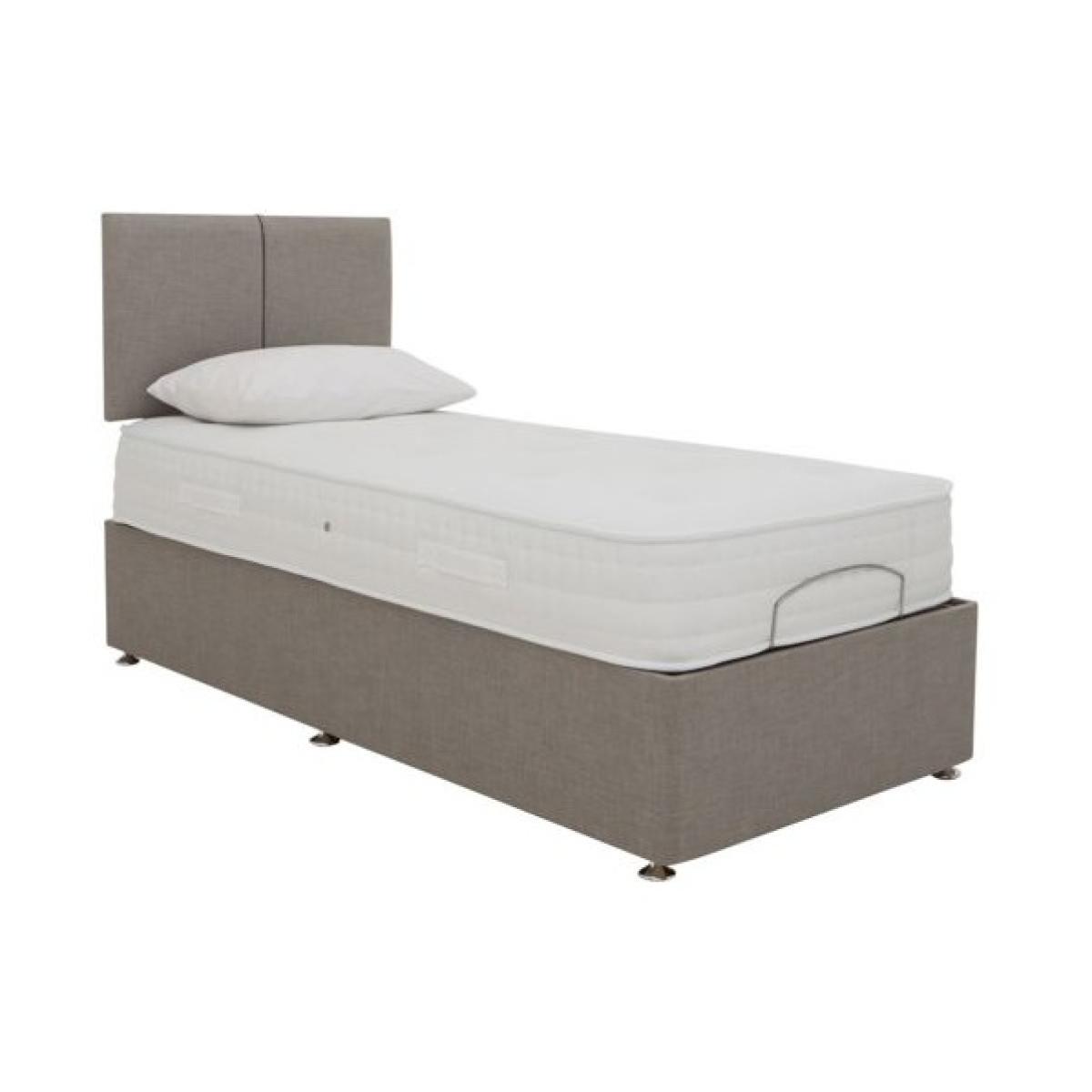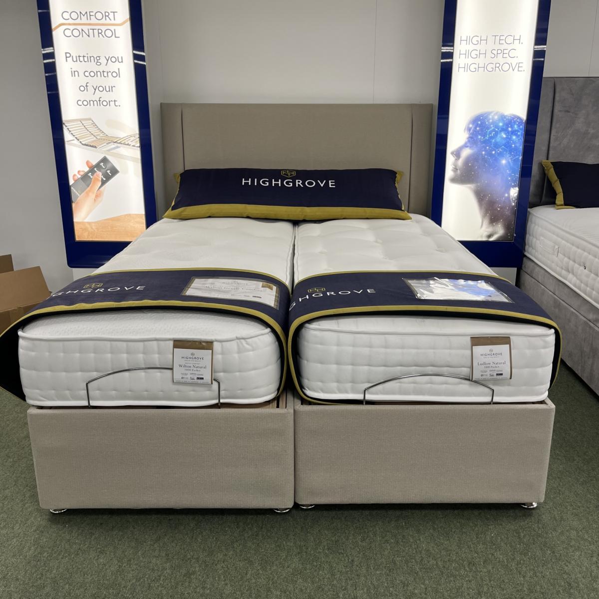 Note - The headboard pictured is not included but is available to purchase separately. The Wilton mattress from Highgrove, featuring 1000 individual pocket springs and luxurious wool, cotton, silk and cashmere fillings, provides total body support and correct spinal alignment. The luxury hand-tufted and breathable stretch fabric cover is excellent at controlling temperature and moisture build-up. The adjustable bed features a reliable motor action. The slatted motion base flexes quietly with the assistance of a corded handset - available in a wide range of colours and sits on padded feet. FEATURES: Mattress Tension - Soft Luxury hand- tufted and breathable stretch fabric cover. Sumptuous surface upholstery includes a rich mix of Wool, Cotton, Silk and Cashmere creates a softer surface feel. Highgrove 1000 Pocket spring system (150cm size) provides total body support and correct spinal alignment. Single-sided mattress construction so that you don't need to turn - regularly rotate 180° to maximise mattress comfort. 5 Year Warranty Five fold head and foot rest action Reliable and quiet motor Easy to use handset 25 stone weight capacity Padded chrome feet - non slip Strong slatted base with adjustable firmness slider for lumbar region Available in a wide selection of fabrics. SIZES: Mattress Depth - 22cm Small Single - W 75cm x L 200cm Single - W 90cm x 200cm Small Double - W 120cm x 200cm Double - W 135cm x 200cm All screens vary in colour reproduction and whilst every effort has been made to display the colour as accurately as possible it is for guidance only.