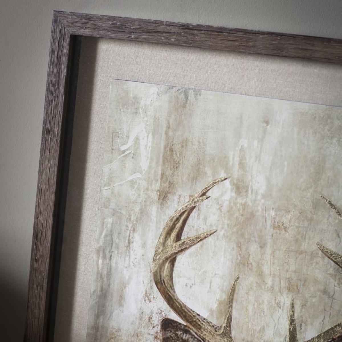 I love this stag print for its rustic charm and versatile style. It works particularly well in country, cabin, or modern interiors that embrace natural elements and earthy tones. To style it effectively, consider pairing it with muted colour palettes or layered with other wildlife-inspired accessories for a cohesive look. Practical tips include hanging it at eye level above a console table or sideboard to create a focal point, or mixing it with textured furnishings like knits or velvet for added depth. The frame’s neutral tone also makes it adaptable across different wall colours and rooms, making it a great statement piece in both cosy living rooms and hallways.