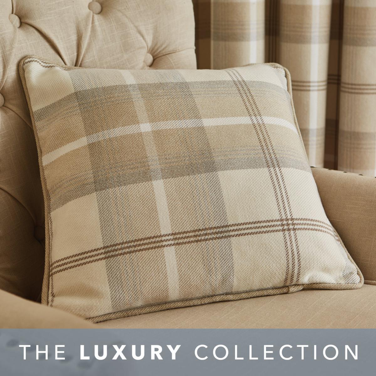 Ideal to coordinate with our Highland Check eyelet curtains, this cushion from our Luxury collection features a timeless tartan check design and is completed in a warm natural colourway. This cushion is fashioned from a brushed yarn fabric for a wonderfully tactile finish and is completed with piped edging for a sophisticated look. Generously filled with plump and durable feathers for lasting fullness, this cushion ensures maximum comfort and support while relaxing in your home.