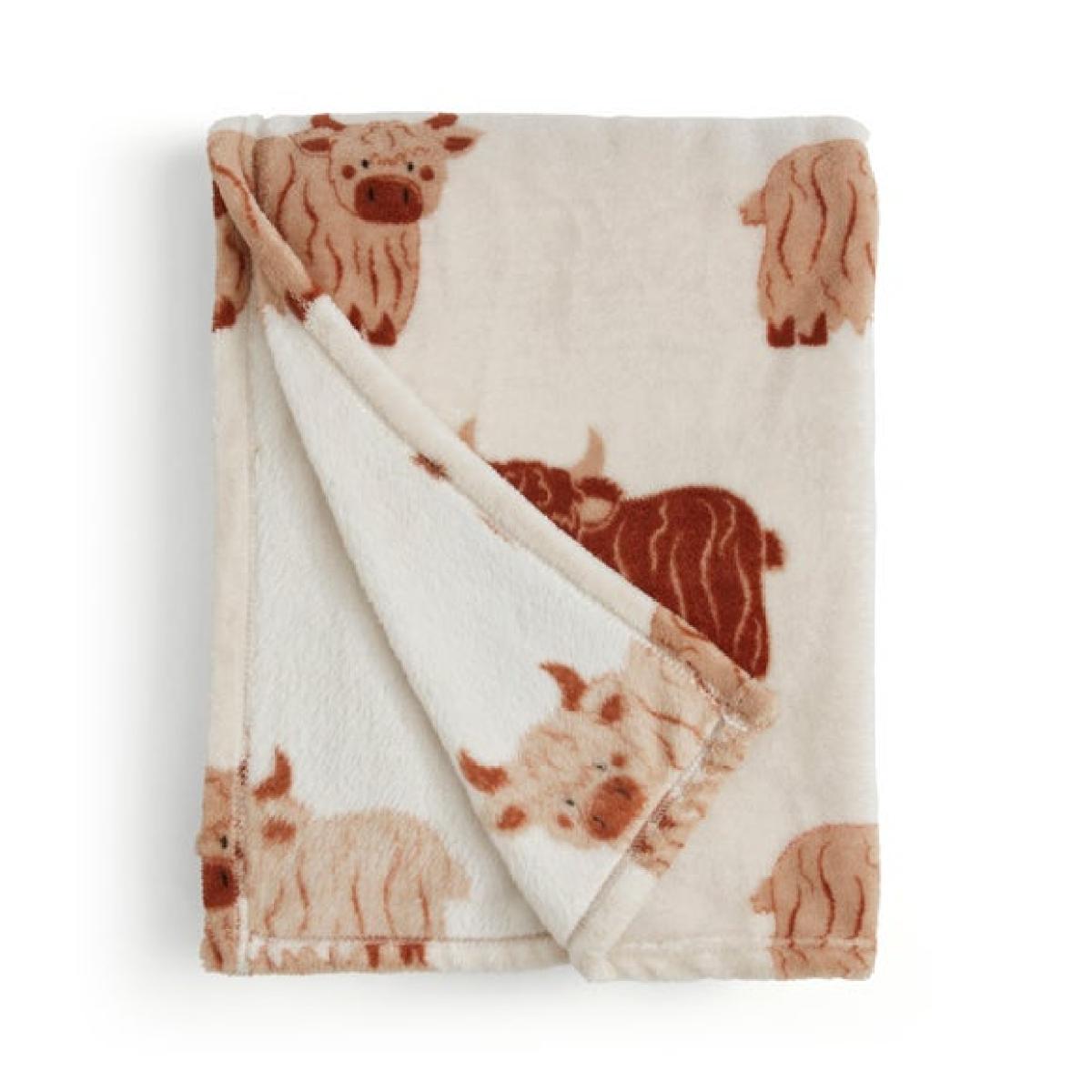 * Highland cow design * Soft feel * Made from polyester * Machine washable Bring a rustic touch to your living space with the Highland Cow Fleece Throw. Made from recycled materials, this ultra-soft throw offers a warm and inviting feel, perfect for relaxing at home. The attractive design showcases the charm of the Highland cow, adding character to your décor.