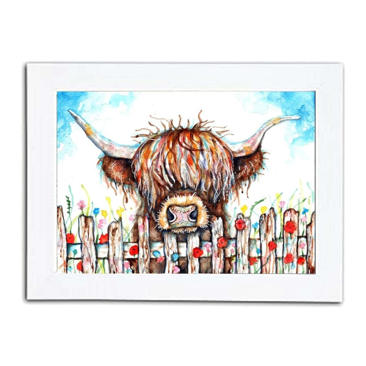 Transform your space with the charm of Be Coventry's Highland Cow "Over the Fence" Watercolour Framed Art. Capturing nature's beauty, this whimsical scene, originally painted in professional watercolours, is now available as a stunning print. Adorned with a sleek grey frame, it effortlessly elevates any room in your home with a touch of elegance.