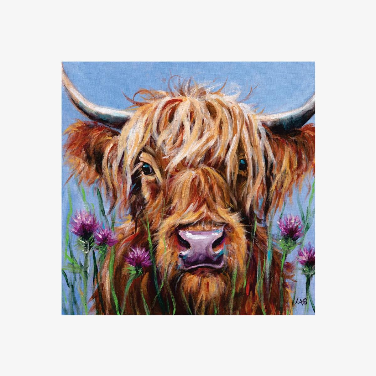 I love this Highlander Square Canvas for its vibrant depiction of the highland cow, which adds a lively and rustic charm to any space. It works particularly well in casual, country-inspired interiors, or in modern spaces where a pop of colour and personality is desired. To style it effectively, consider pairing it with neutral walls and minimalistic furnishings to let the artwork stand out, or create a gallery wall with complementary pieces for a more eclectic look. Practical tips include placing it at eye level in living rooms or hallways to maximise visual impact, and using matte framing to complement the natural, earthy tones of the painting.