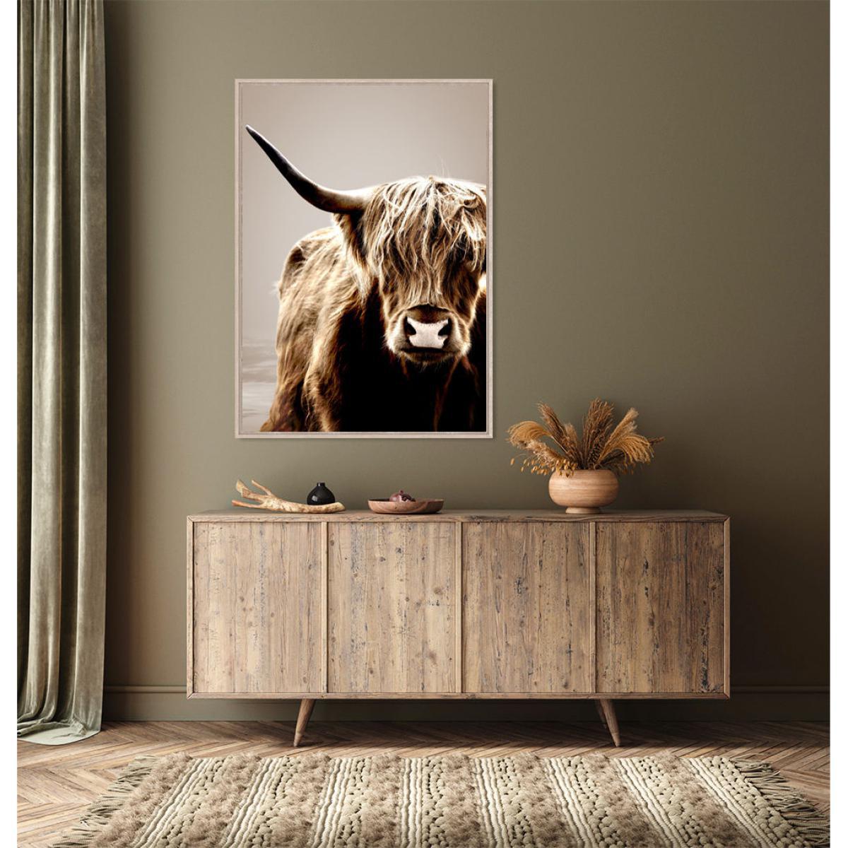 D’ trend, France. The matt printed canvas is stretched on a frame made of French maritime pine that’s PEFC-certified from sustainably managed forests. It’s framed by a shadow box. You’ll be surprised by the effect and the details of this sublime Highlands canvas which showcases a magnificent bison in portrait mode! With its vintage colours, wide open spaces and wild nature, breathe it all in! Let yourself be transported to new horizons.