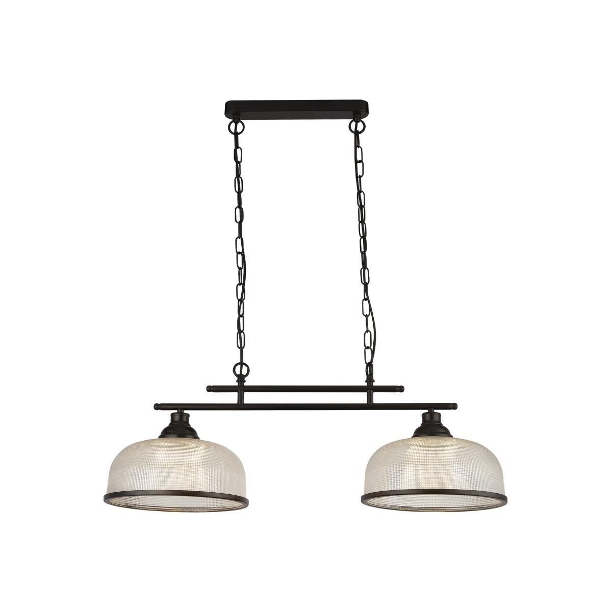 The Highworth 2. Lt Bar Pendant is a captivating lighting fixture that is ideal for any kitchen, dining area or living room. It features a sleek combination of mild steel and Holophane style glass in a stunning matt black and clear colour scheme. Its versatile style seamlessly complements both modern and traditional spaces while its height-adjustable design allows for personalized lighting. The shade boasts a classy black metal trim, while the clear Holophane style glass shade with a ribbed inner adds a touch of elegance.