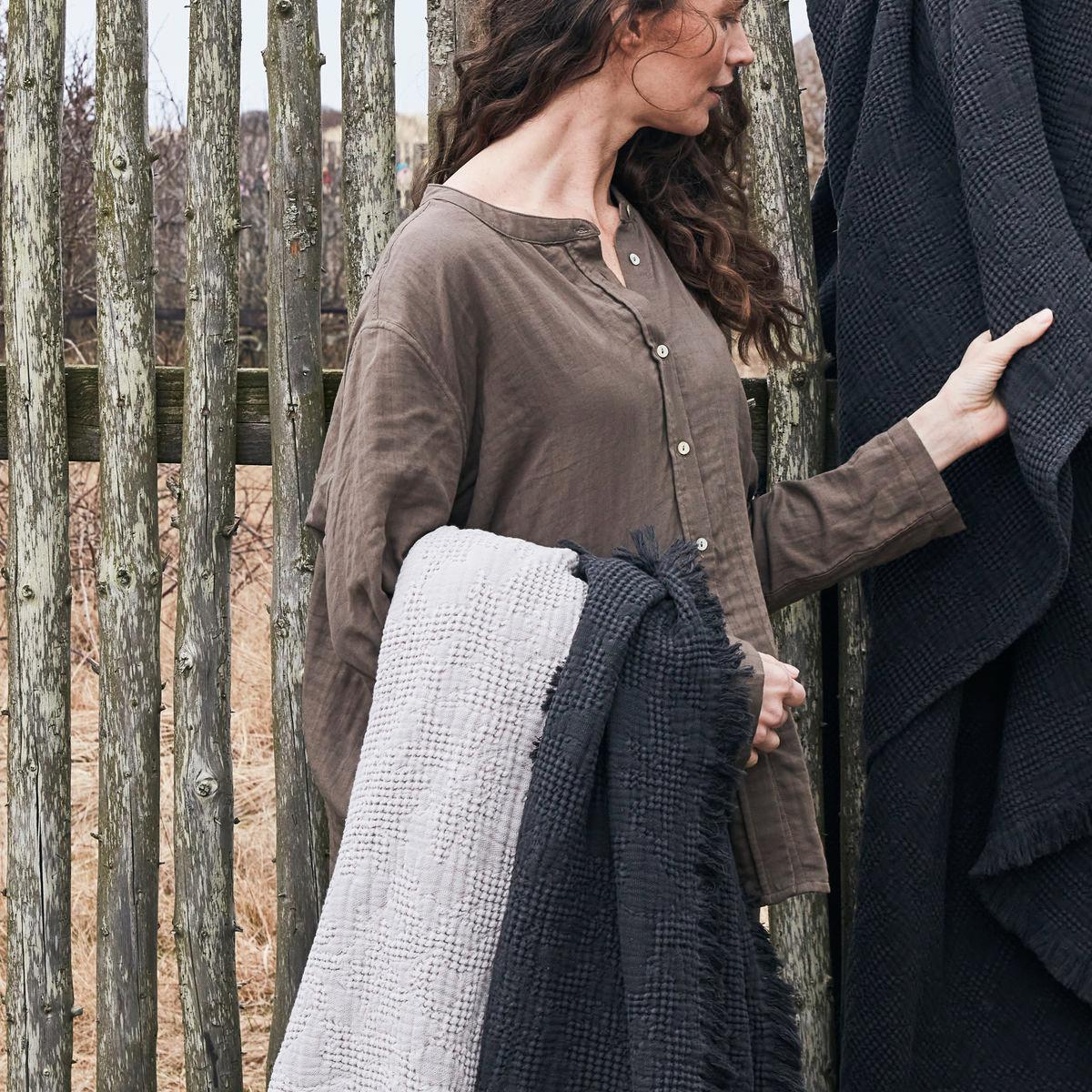 Hilda bedspread 170x180 cm from Danish by byNOR D is a bedspread with a waffle-like pattern created on jacquard looms. The fringe on the corners of this bedspread creates a warming detail which then gives the bedspread a cosy feel.