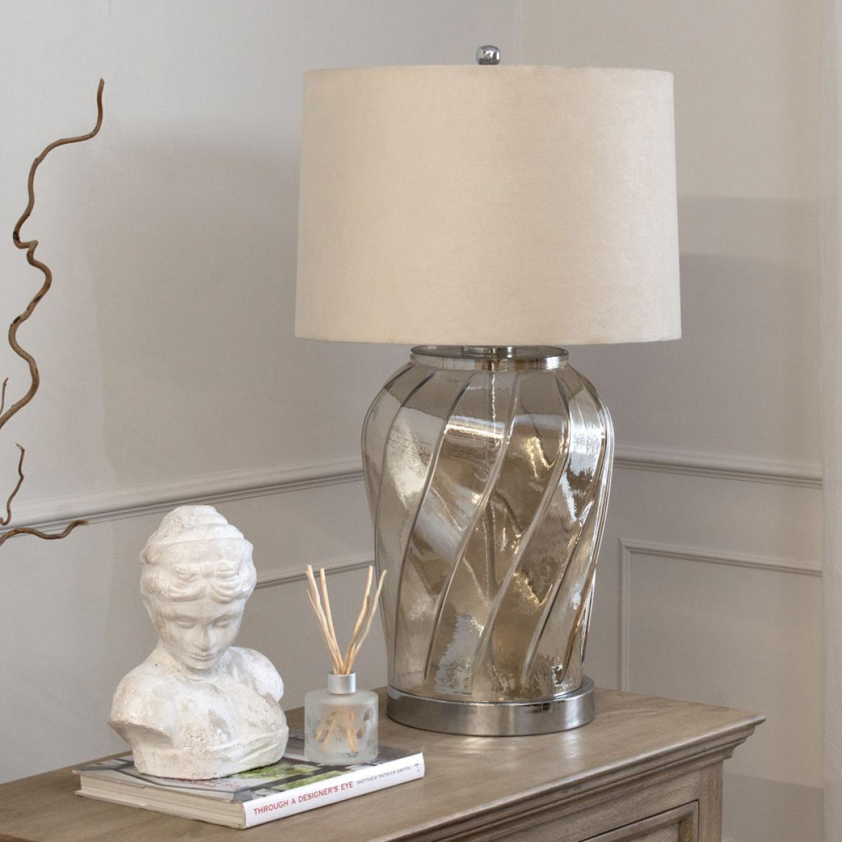 Illuminate your space with the luxurious glow of the Hill Interiors Ambassador Metallic Glass Lamp with Velvet Shade, a perfect fusion of opulence and sophistication. Crafted with cream-colored glass, this lamp exudes timeless elegance. Its metallic finish adds a touch of glamour, while the velvet shade provides a soft, diffused light. Whether placed on a side table or console, it becomes a statement piece in any room. Trust in Hill Interiors' dedication to quality craftsmanship and elevate your living space with the Ambassador Metallic Glass Lamp, where luxury meets functionality effortlessly.