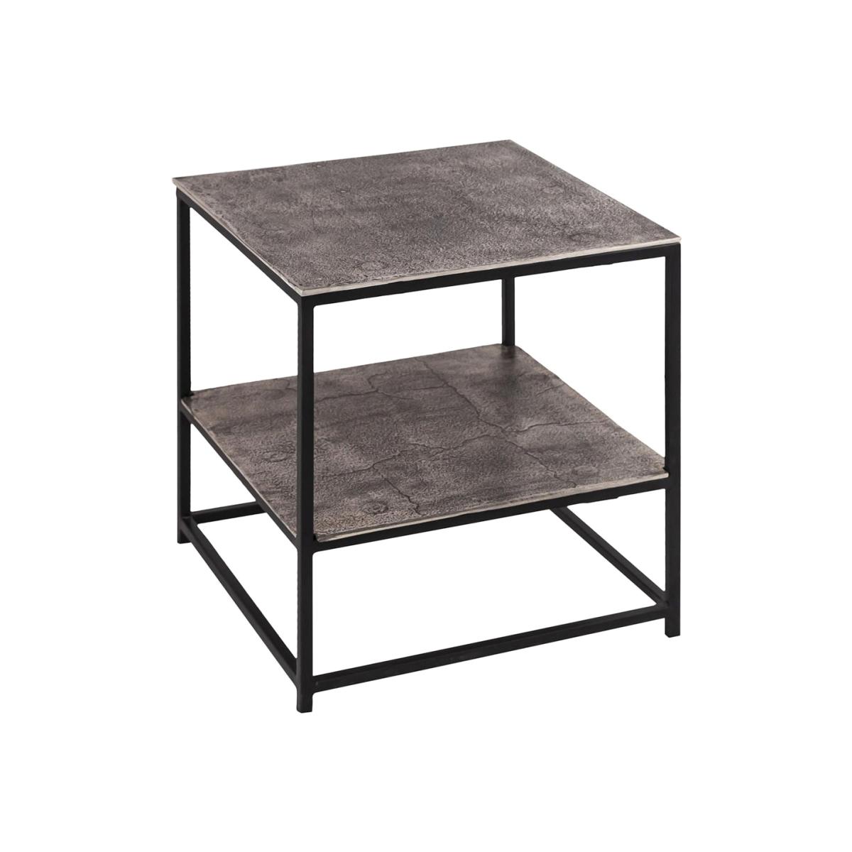 This is the Farrah Collection Silver Side Table. Hand cast in aluminium, the casting process gives these pieces a pitted, textured surface which is both eye-catching and hardwearing. Designed with. View More. This is the Farrah Collection Silver Side Table. Hand cast in aluminium, the casting process gives these pieces a pitted, textured surface which is both eye-catching and hardwearing. Designed with versatility of use in mind, the Farrah Furniture Collection comprises sturdy pieces which are also light enough to move around your home. A contrasting black painted frame finishes this side table's look and makes it a perfect fit with contemporary homes. Use this item's surface and stunning shelf space to display decorative accessories from the Farrah Collection. A fantastic choice for living rooms.