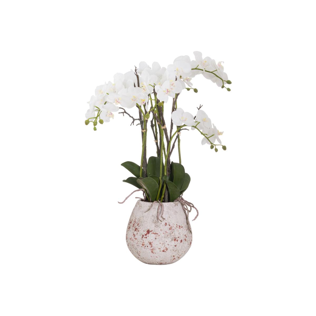 Add a touch of elegance to your home decor with the Hill Interiors Large Stone Potted Orchid with Roots, a perfect blend of natural beauty and sophistication. Featuring lifelike grey, green, and white flowers crafted from fabric and plastic, this faux orchid exudes timeless charm. Its stone pot adds a touch of rustic elegance, making it a striking accent piece for any room. Whether placed on a side table, mantle, or shelf, it adds a touch of botanical beauty to your living space. Trust in Hill Interiors' commitment to quality and elevate your home decor with the Large Stone Potted Orchid with Roots, where beauty meets craftsmanship effortlessly.