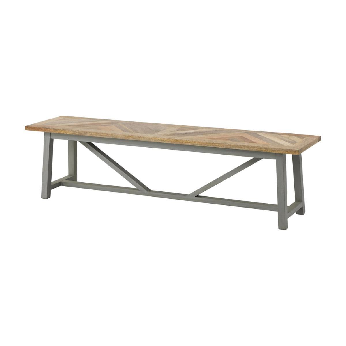 This is the Nordic Collection Dining Table Bench. Built from hard-wearing mango wood, this scandi-inspired bench's parquet top and hand brushed grey painted legs give a real softness to its overall aesthetic. Part of a capsule collection comprising a number of versatile options for living and dining spaces, this table has an easy-going minimalism to it that will add an instant style update to a space. Dimensions: H: 44 x W: 170 x D: 40 cm Materials: Wood Care Instructions:Wipe with a clean, damp cloth
