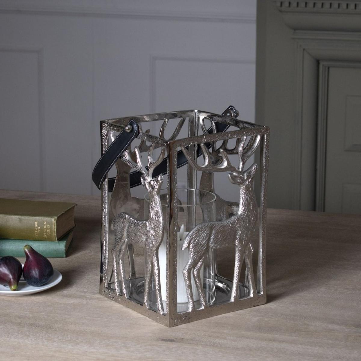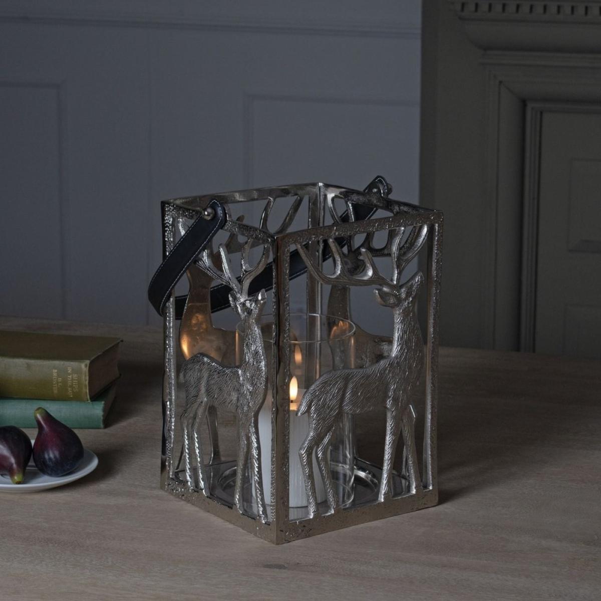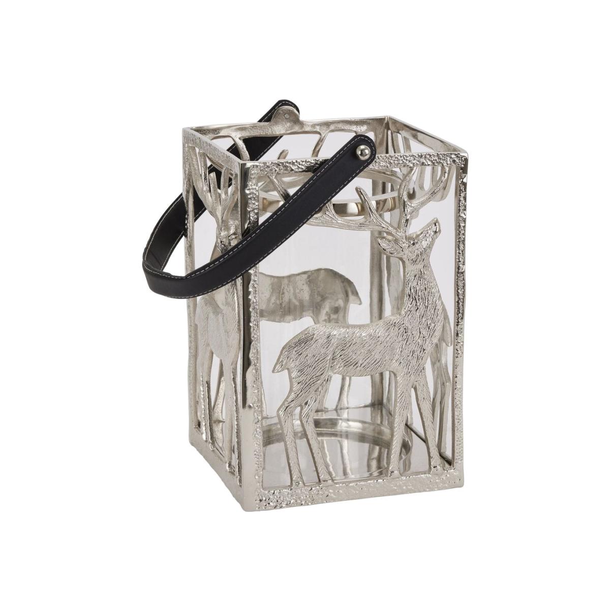 Illuminate your surroundings in style with our Silver Stag Hurricane Square Lantern. Crafted with a sleek, square design and featuring silver stag accents, this lantern effortlessly blends a modern aesthetic with rustic charm. The black strap adds a touch of sophistication to the design, making it an ideal addition to any space. Place it on your porch, hang it from a hook, or let it adorn your tabletop - this lantern is perfect for creating a cozy ambiance while showcasing your love for the outdoors.