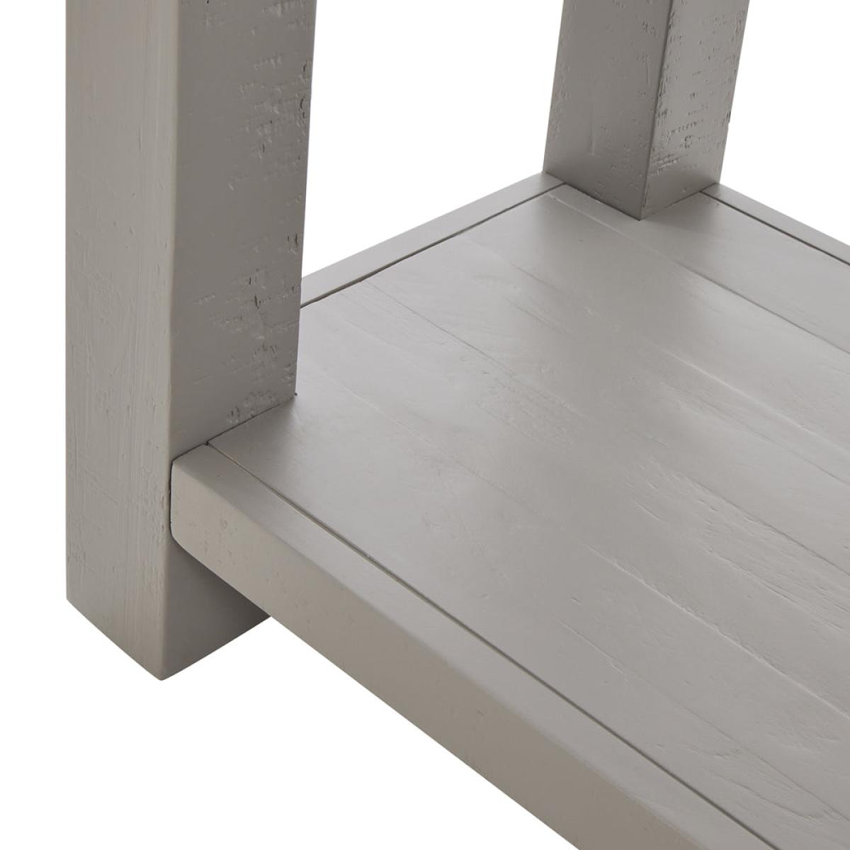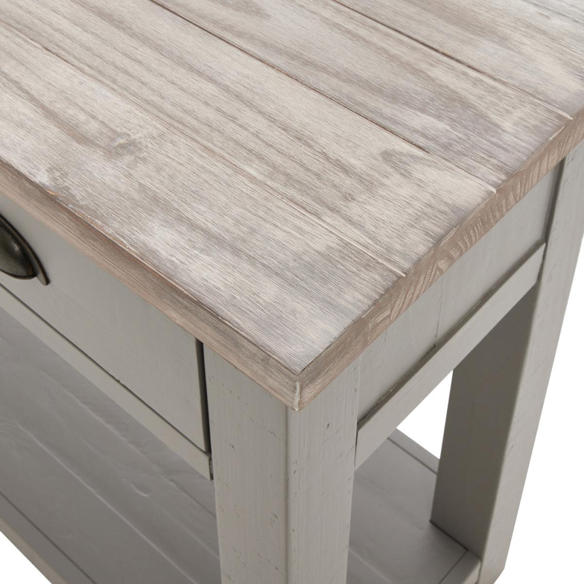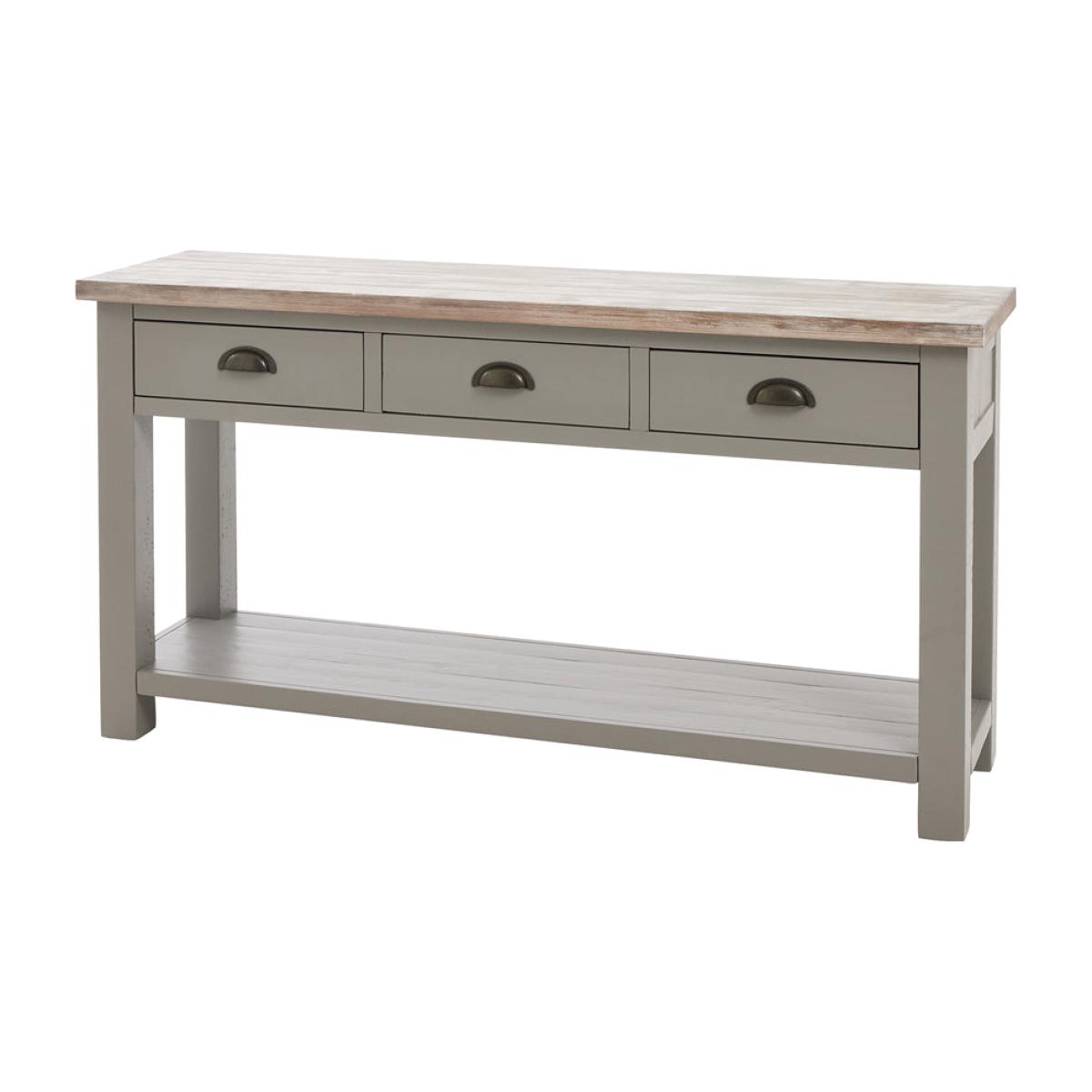 The Oxley Collection Three Drawer Console Table is perfect for display as well as storage. A washed wood plank surface blended with a frame in a warm grey hue deliver a relaxed, informal feel to an. View More. The Oxley Collection Three Drawer Console Table is perfect for display as well as storage. A washed wood plank surface blended with a frame in a warm grey hue deliver a relaxed, informal feel to any space. Stylish as well as functional, this high quality item would be equally at home in traditional and contemporary styled spaces. Its three useful drawers will ensure you keep its surface clutter free and its bottom shelf is a great addition for either storage or styling. Style with a large mirror or art piece above to really highlight its beauty. This item is part of the Oxley Collection which marries rustic and contemporary aesthetics to deliver a robust range suited to a wide variety of homes. Individual, rough-sawn pine planks are used to create these items, delivering its characterful, worn vibe. The product bases are lightly brushed with a moody, timeless grey hue allowing the grain of the wood to still be visible. This is complemented with the washed pine top, bringing the whole look together. With simple, clean lines a contemporary feel is created by the black cup handles. The Oxley Furniture Collection is sure to stand the test of time both in style and quality.