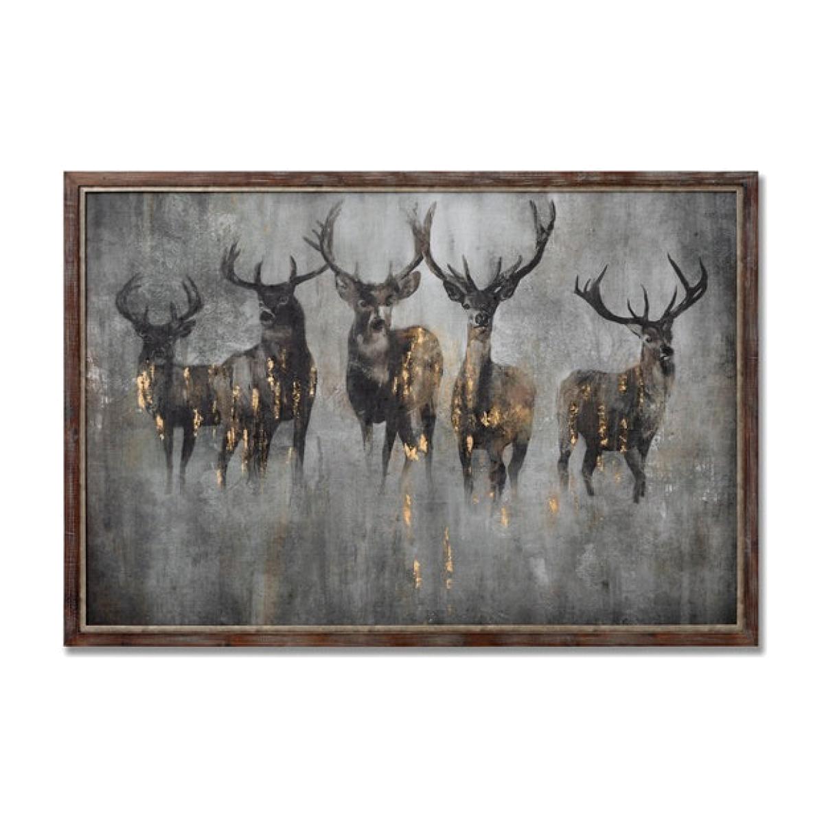 I love this stag painting - it brings a sophisticated, woodland vibe to various interiors. Its sizeable form makes it a statement piece ideal for feature walls in living rooms, dining areas, or even hallways. The earthy tones and textured wood frame lend themselves well to rustic, contemporary, or farmhouse styles, adding warmth and a touch of nature-inspired charm. To style it effectively, consider pairing with neutral or organic colour palettes and layering with other natural materials such as wood or linen for a balanced look. It also works well hung slightly above eye level on a wider wall to command attention without overwhelming the space.