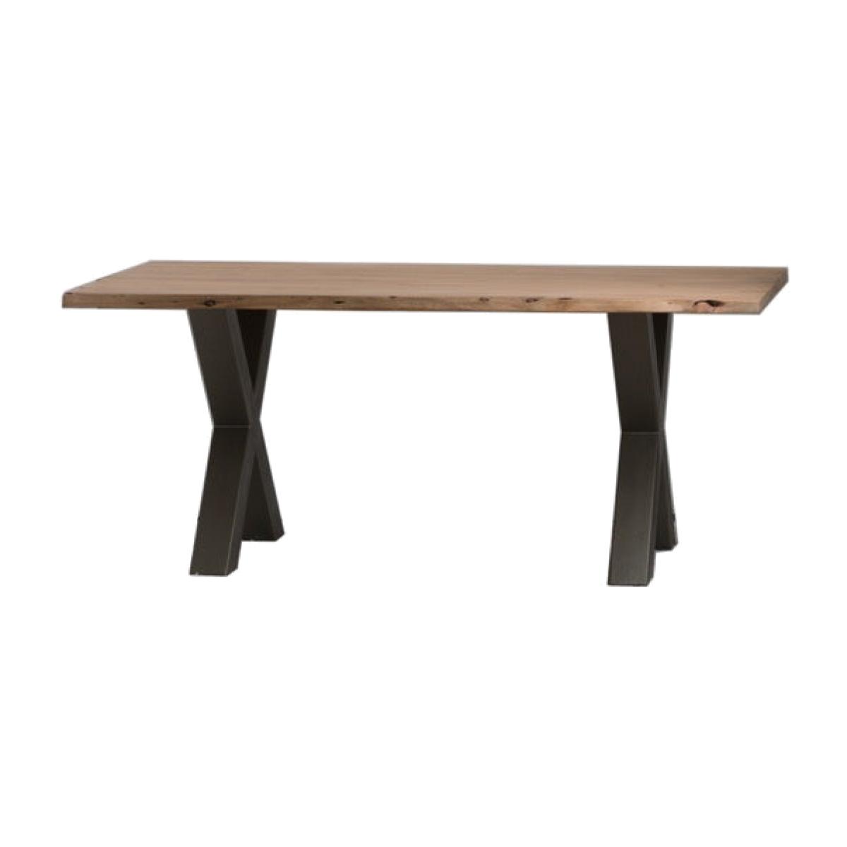 The Live Edge Collection Dining Table is made from Indian acacia wood creating charm and character, this range helps you to bring a feel of the outdoors in by creating a minimal and earthy look. The simplicity of these designs are what makes them so impressive, each piece is complete with a grey metal cross leg design or frame which complements the rustic and natural design of the wood. The live edge feature brings an eye catching design to these pieces and highlights the handmade beauty and authenticity of these products. Width: 100 cm x Depth: 180 cm x Height: 78 cm.