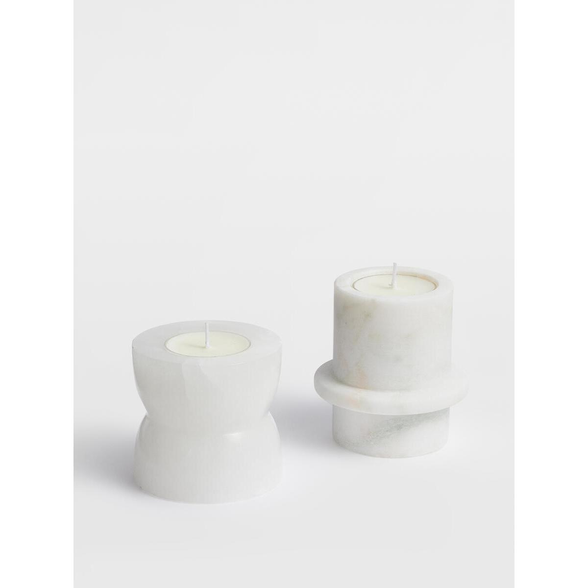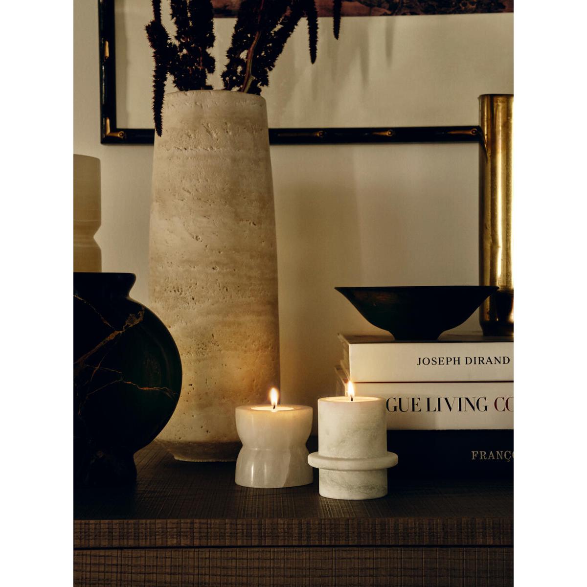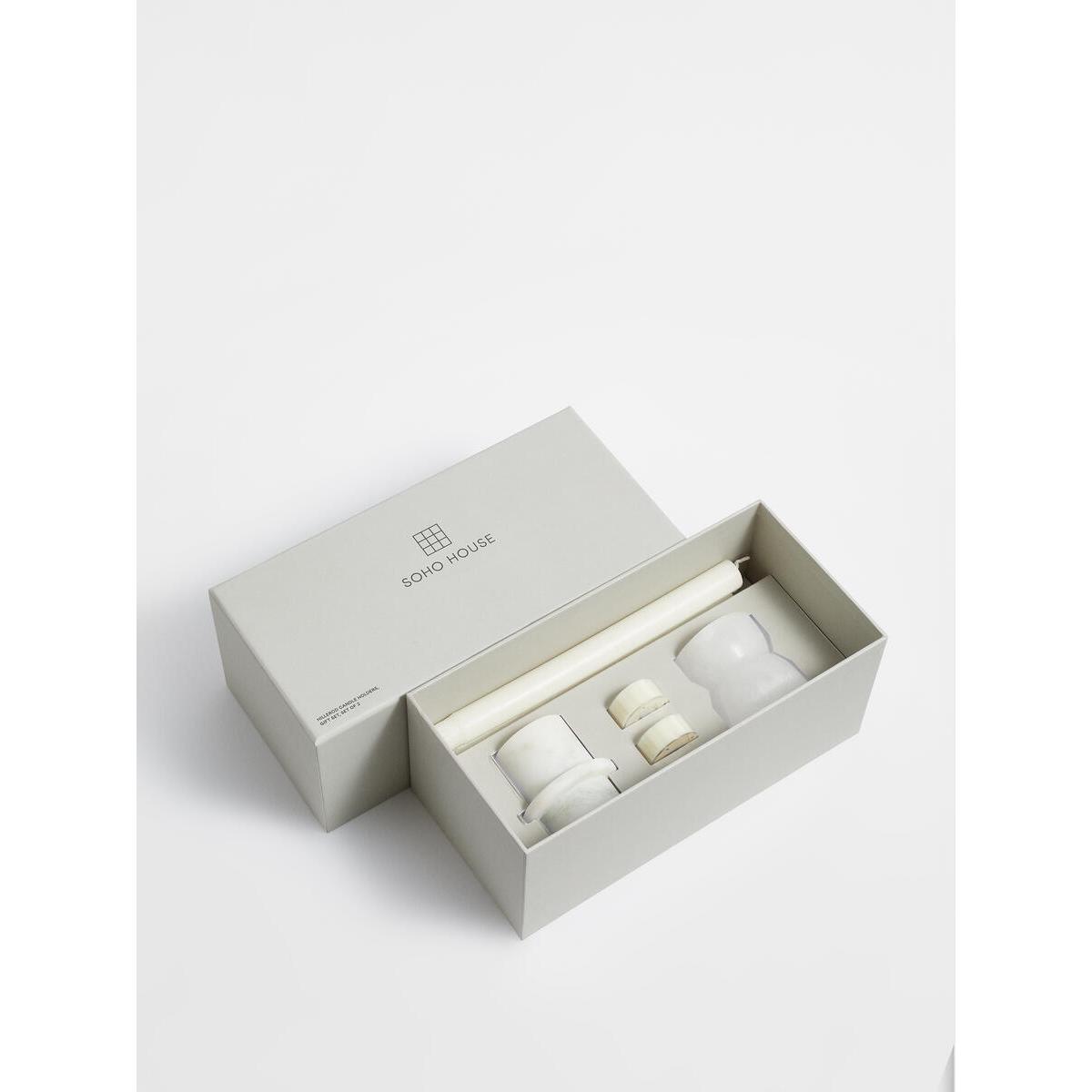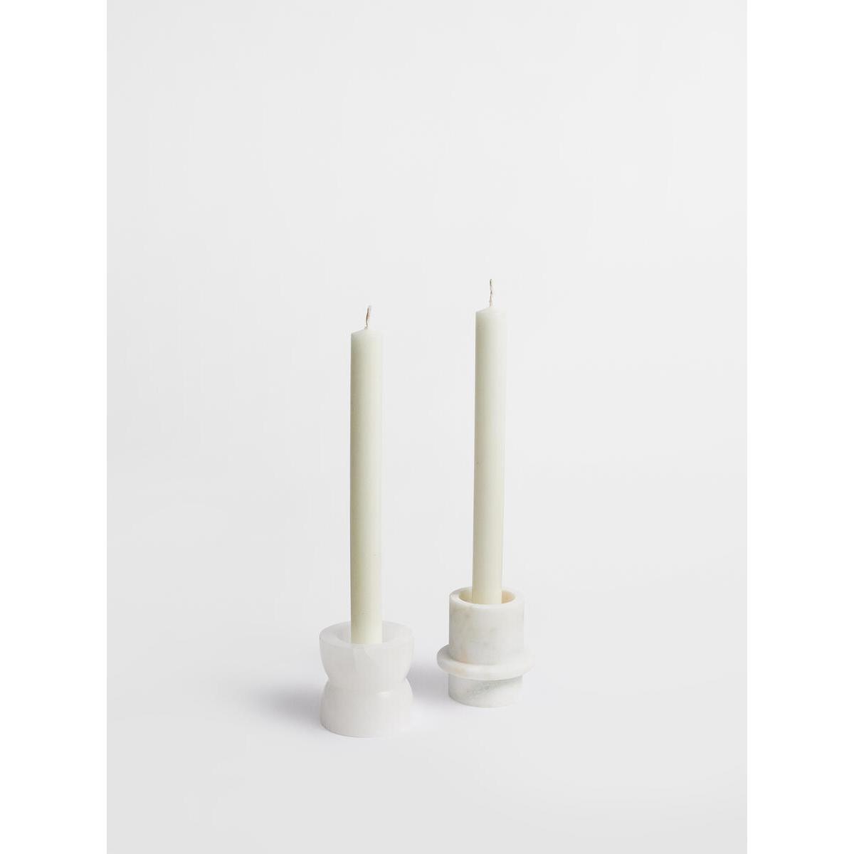 The Hillerod candleholder gift set is inspired by the naturalsurroundings of Soho Roc House in Mykonos. It includes twotealights and two ivory dinner candles, which slot into thealabaster and onyx marble candleholders. They're great for creatinga decorative table display. Set of two candleholders. Includes two ivory dinner candles and two tealights. Crafted from alabaster and onyx marble. Each piece may vary due to the natural variations in thestones. Inspired by 180 House.