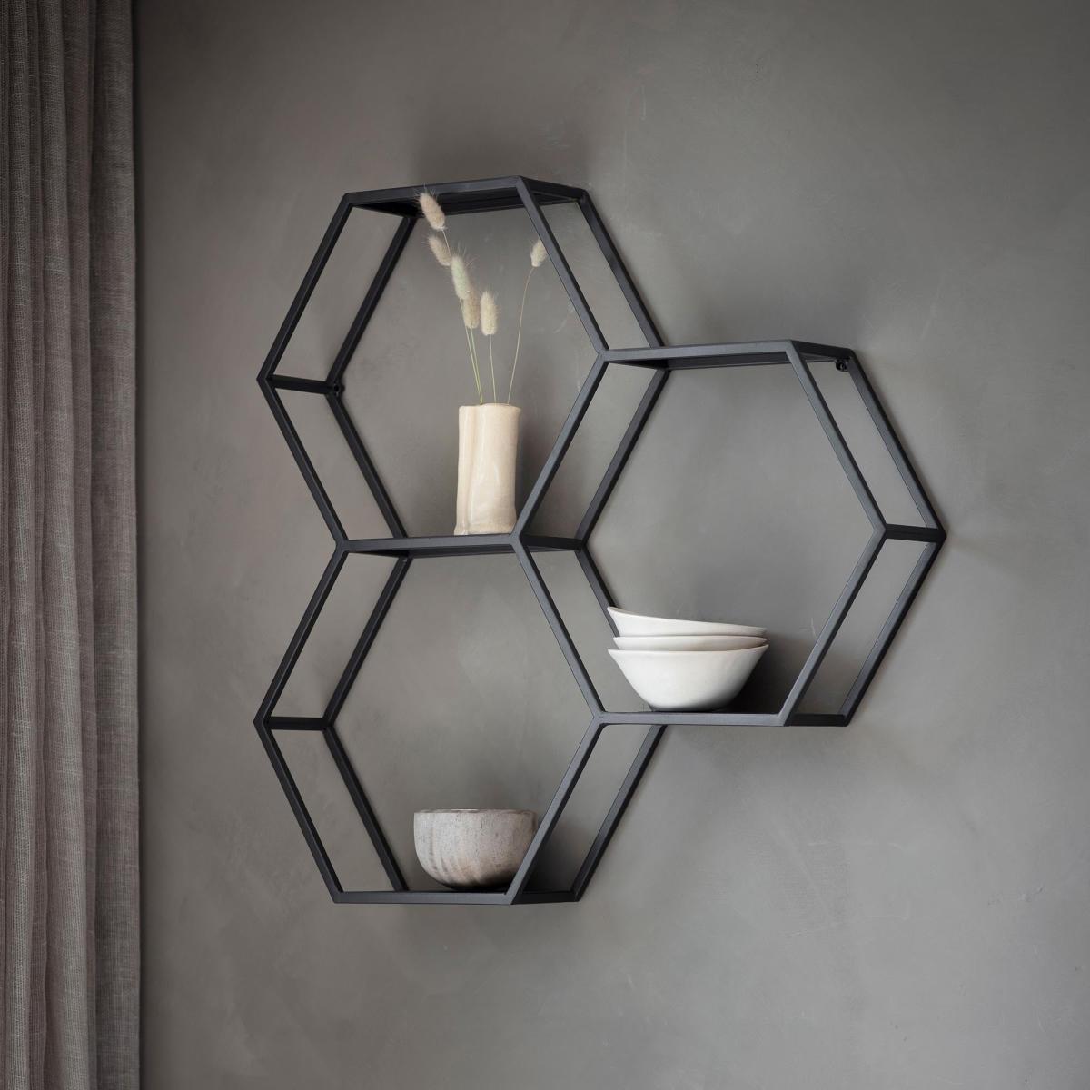 I’m a fan of the Hillston wall shelf because its black metal frame and hexagonal modules bring a crisp, graphic look that works equally well in minimalist, industrial or Scandi-inspired rooms. It’s ideal for small urban flats where floor space is tight - think hallway, home office or above a console table - and you can even link two or three to form a larger honeycomb grid. For styling, balance practical storage with a few carefully chosen objects: stack a couple of slim books on one level, add a small potted plant or vase on another and leave at least one segment empty to avoid overcrowding. Mix in natural textures - a woven basket for keys or mail, a ceramic pot or a wooden sculpture - so the black metal doesn’t feel too harsh. Keep items in odd-numbered groups and vary heights to give the display interest without it looking cluttered.