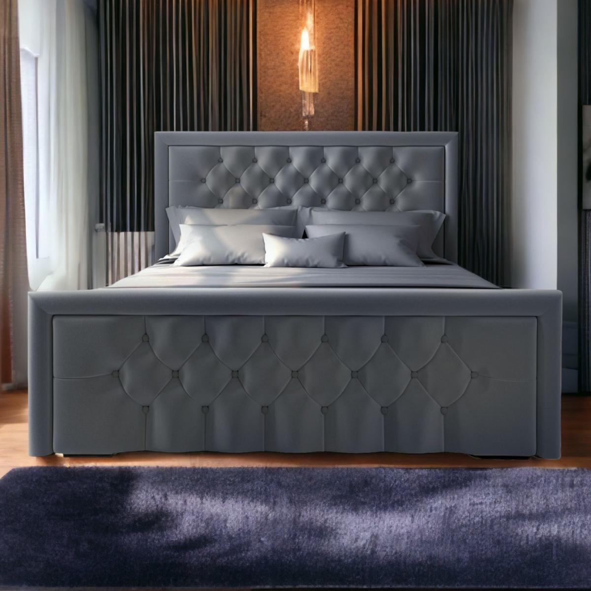Our Hilton Chesterfield bed is our most popular luxury bed frame. Designed to sit simple yet stand out with its vintage chesterfield look with a contemporary twist by adding a surround bumper on both the headboard and footboard. Velvet. Deep matching buttons.