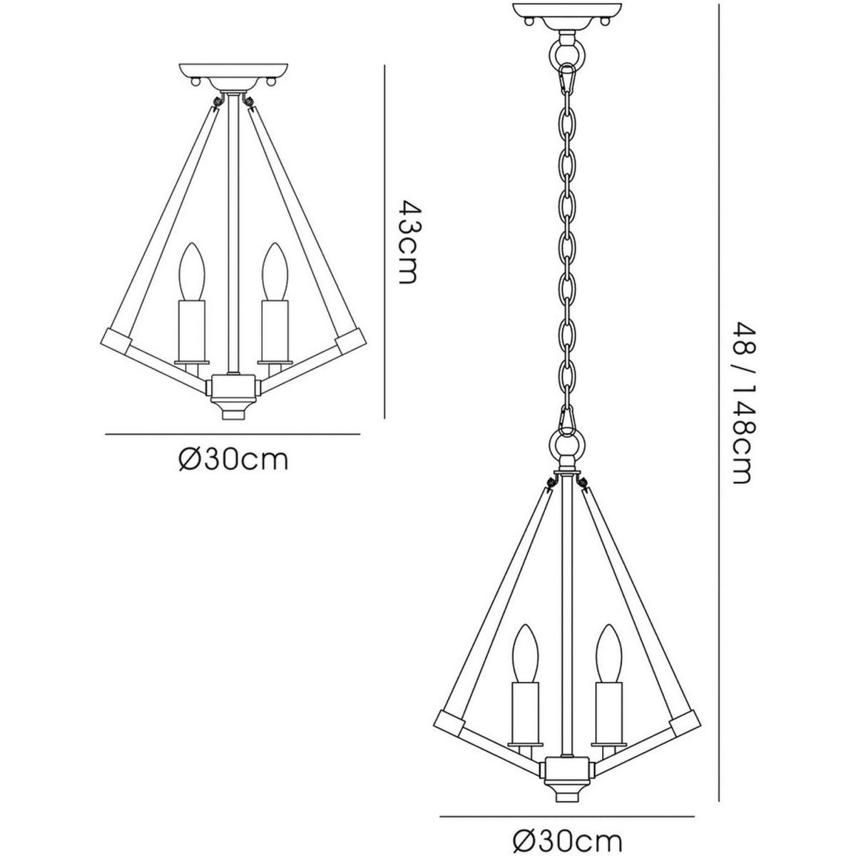 Hilton Tetragonal Caged Ceiling Pendant E14 Polished Nickel, Taupe Wood - Polished Nickel