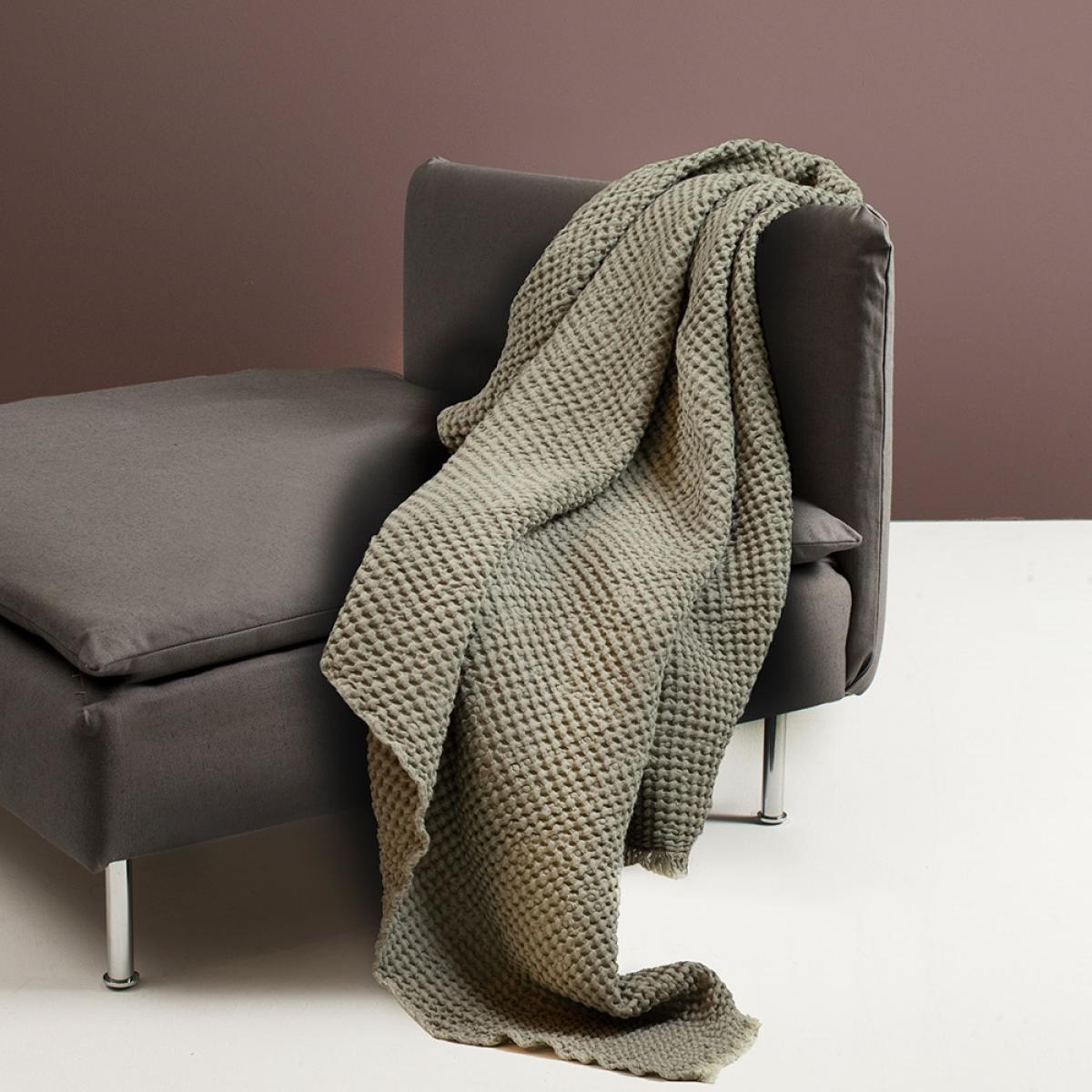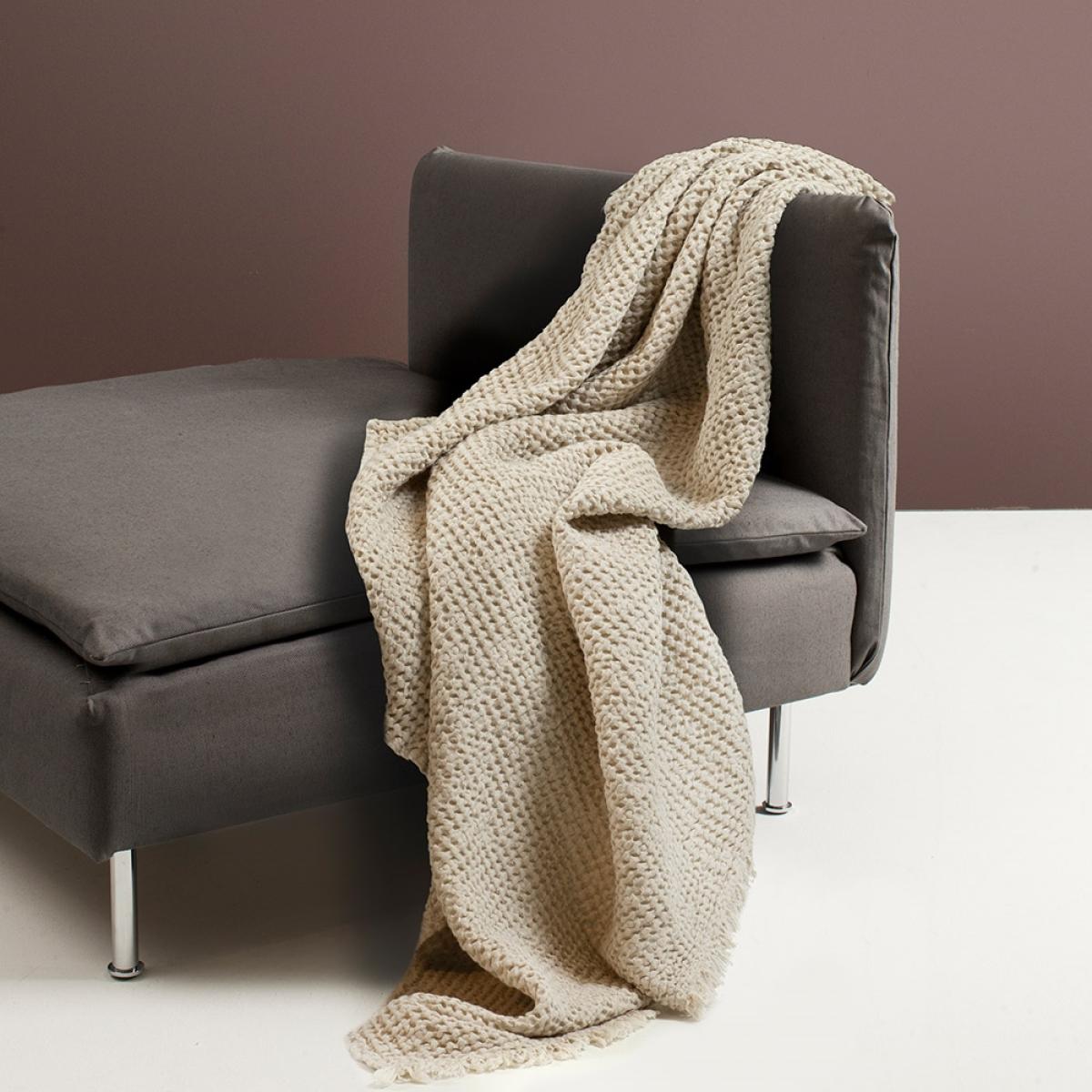 Get cosy on the sofa underneath the Angeline Throw from Himla, the perfect addition to those movie nights. Made from a mix of cotton and linen, with a gorgeous waffle style finish, this throw will add some texture and interest wherever you choose to use it. Styled in a calming neutral tone, making a peaceful spot to relax will be one easy task! With a matching cushion, you could even create a layered look on your sofa or bed.