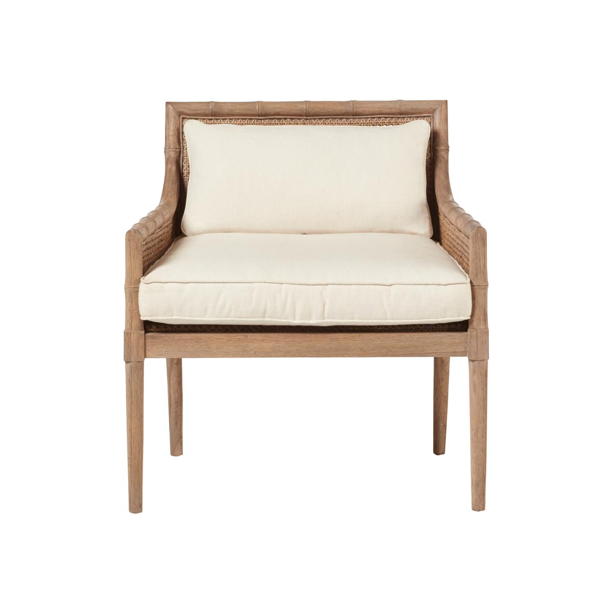 #html-body[data-pb-style=OKKF2ES]. If you like taking a pared-back approach when decorating, or wish to incorporate more natural materials into a look, consider the Hinako. There are myriad ways to style this armchair: plump up its removable seat cushion and add a throw for colour, remove the seat cushion and layer other textiles in its place, or pair the chair with a footstool for a mismatched look. The Hinako’s frame is crafted from rattan and wood finished to resemble bamboo canes.