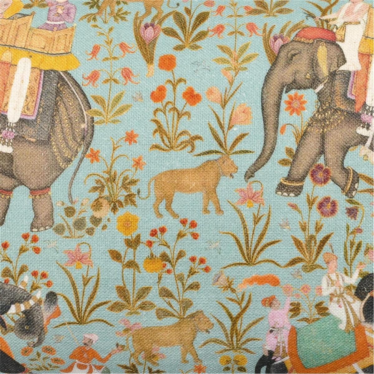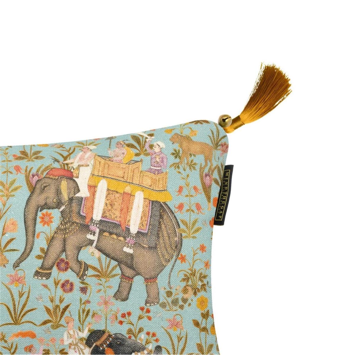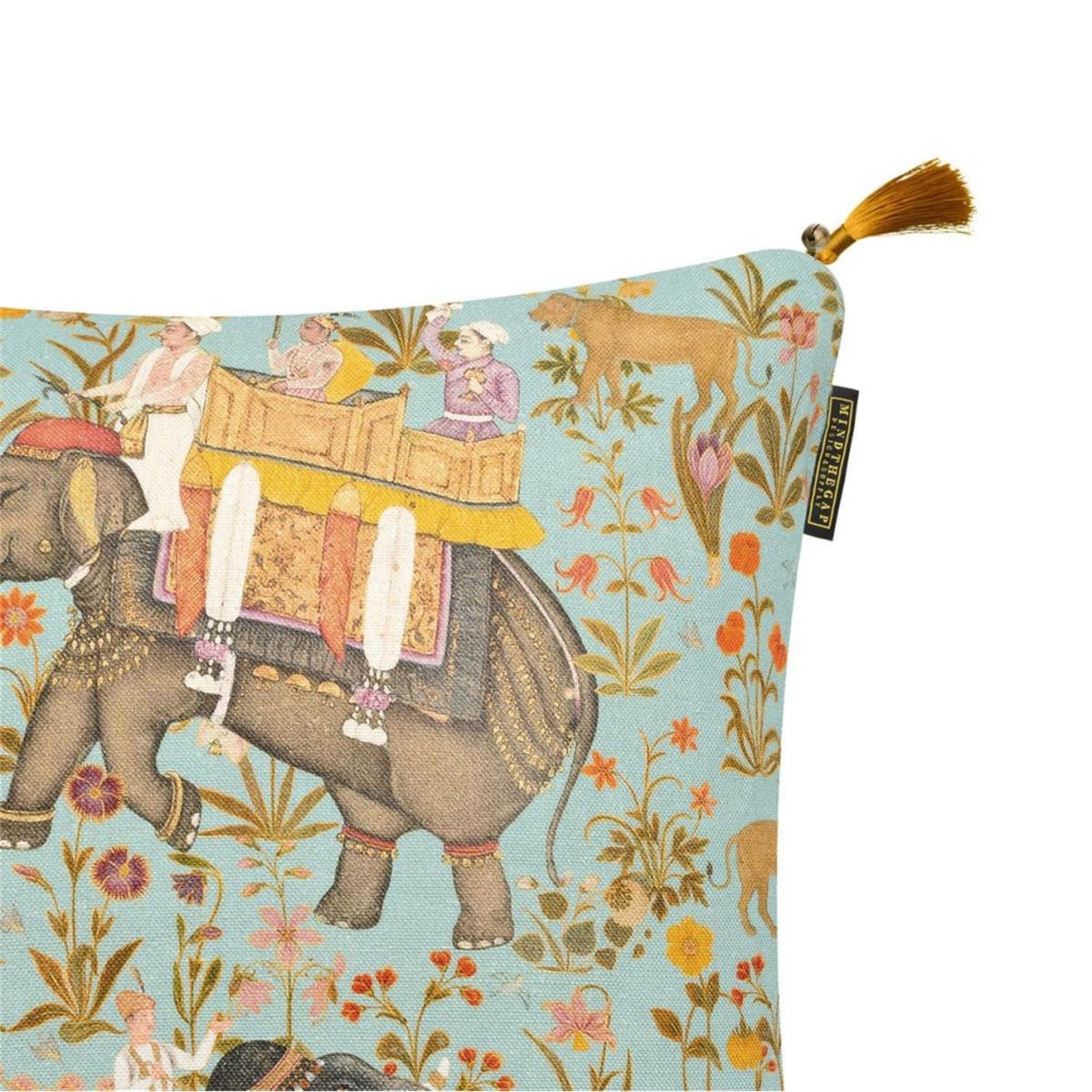 Bring the vibrancy of India home with this Hindustan cushion from MINDTHEGAP. Adorned with Indian elephants and lions against a beautiful floral background, this cushion is an exotic addition to any living space.